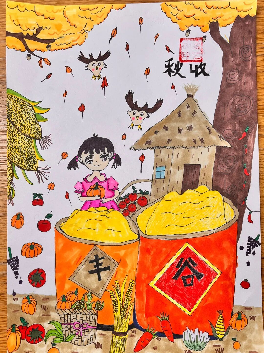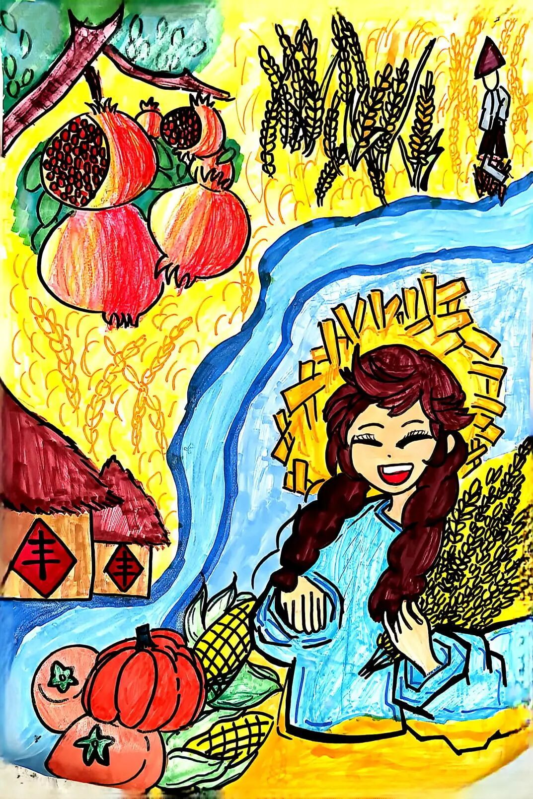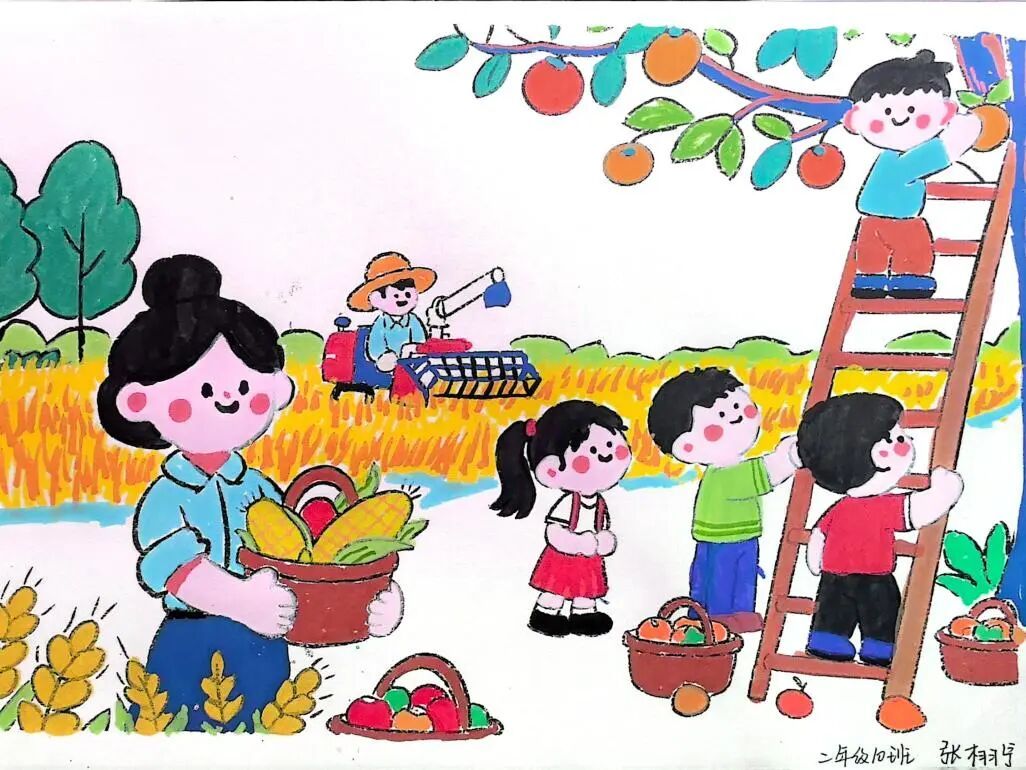 在“创艺颂丰收”环节,全校学生积极参与,以多元的艺术形式表达对丰收与劳动的热爱。有的同学走进田间,与家人共同创作赞颂丰收中国的原创歌曲;有的用画笔描绘金秋的绚烂,用书法书写劳动的赞歌;还有的通过摄影、手工作品记录下劳动的美好瞬间。