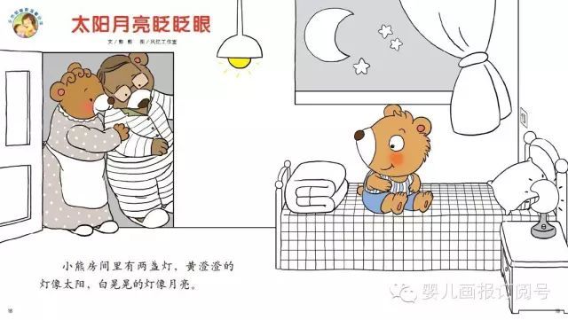 小熊说:“我不要睡觉。妈妈你看,‘太阳’和‘月亮’眨了眨眼!”