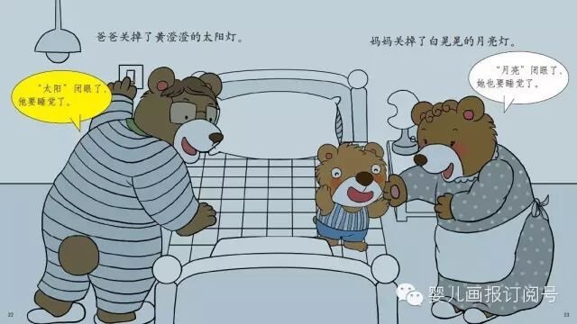 妈妈关掉了白晃晃的月亮灯。“‘月亮’闭眼了,她也要睡觉了。”