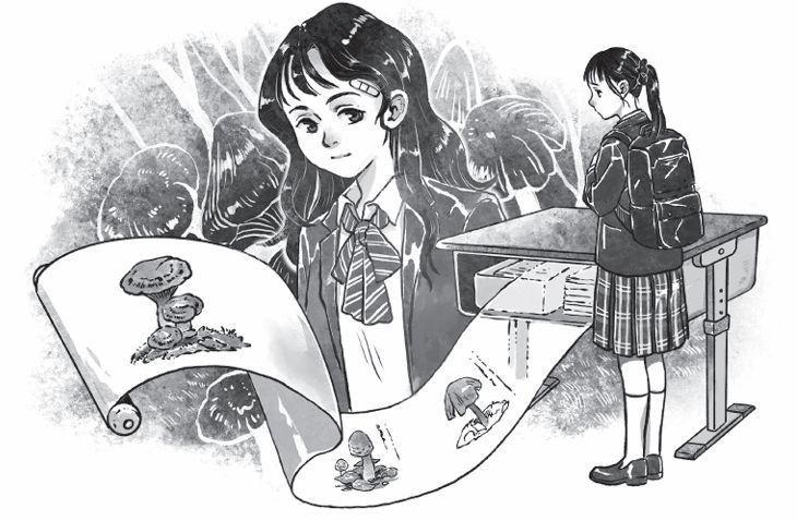 第二天,我早早去了学校,猛地拉开课桌抽屉,想找出那本青彦借给我的课外书,却发现里面赫然长出了蓝色的蘑菇。