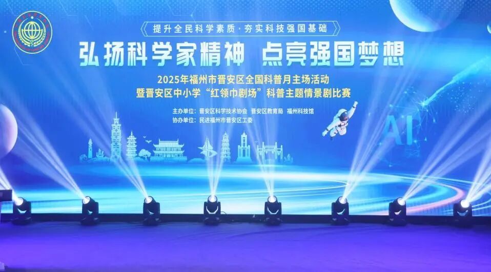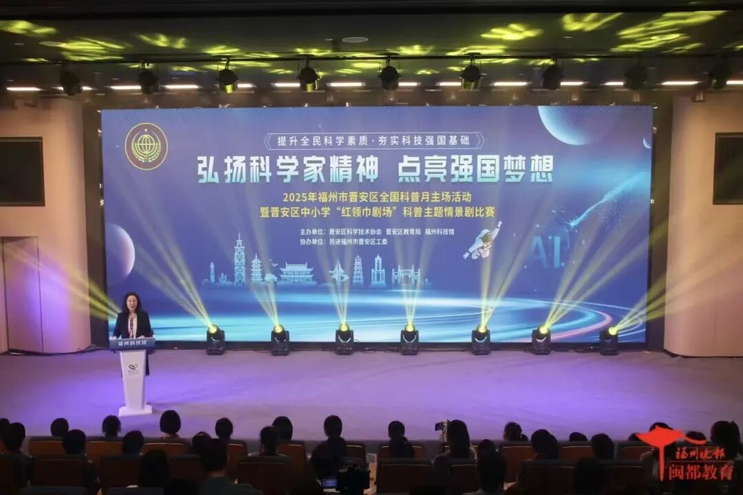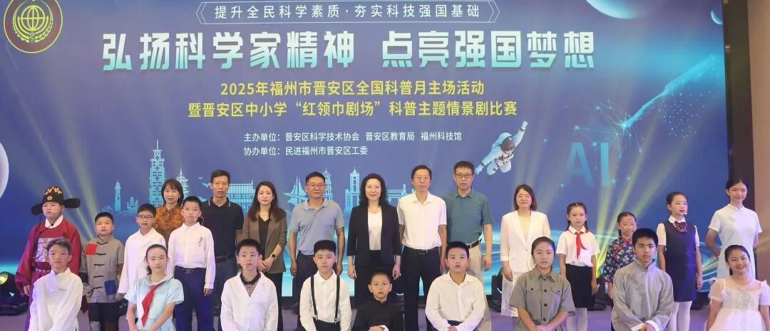 2025年9月是《中华人民共和国科学技术普及法》首个法定的全国科普月,今年科普月的主题是“提升全民科学素质,夯实科技强国基础”。为深入宣传贯彻习近平总书记关于科技创新、科学普及和科学素质建设的重要论述,培养少先队员科技创新能力,教育引导少年儿童讲科学、爱科学、学科学、用科学,努力成长为堪当民族复兴大任的时代新人,9月25日上午,由晋安区科学技术协会、晋安区教育局、福州科技馆联合主办的“弘扬科学家精神・点亮强国梦想”中小学主题情景剧决赛在福州科技馆拉开序幕。晋安区委副书记、政法委书记林欣,市科协党组成员、副主席林涛,晋安区教育局党组书记、局长吴健斌,晋安区科协党组书记林海,晋安区科协主席郭晓丹,福州市科技馆副馆长郑榕英出席活动。区骨干少先队辅导员、少先队员代表现场观摩。