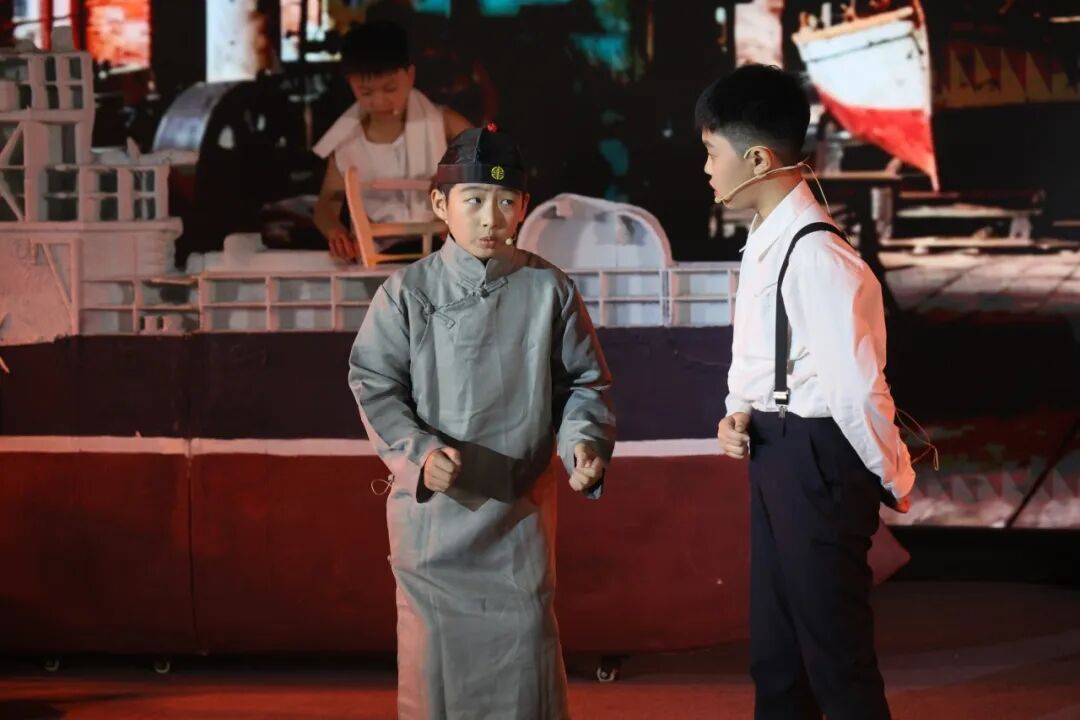 福州第三十二中学的《破浪》,展现近代科学启蒙者严复的求索之路。少年严复怀揣对科学的好奇,一笔一划绘制蒸汽机图纸,在机械原理的世界里探寻未知;成年后,他以“物竞天择,适者生存”的呐喊,冲破封建思想的禁锢,唤醒沉睡的民族。