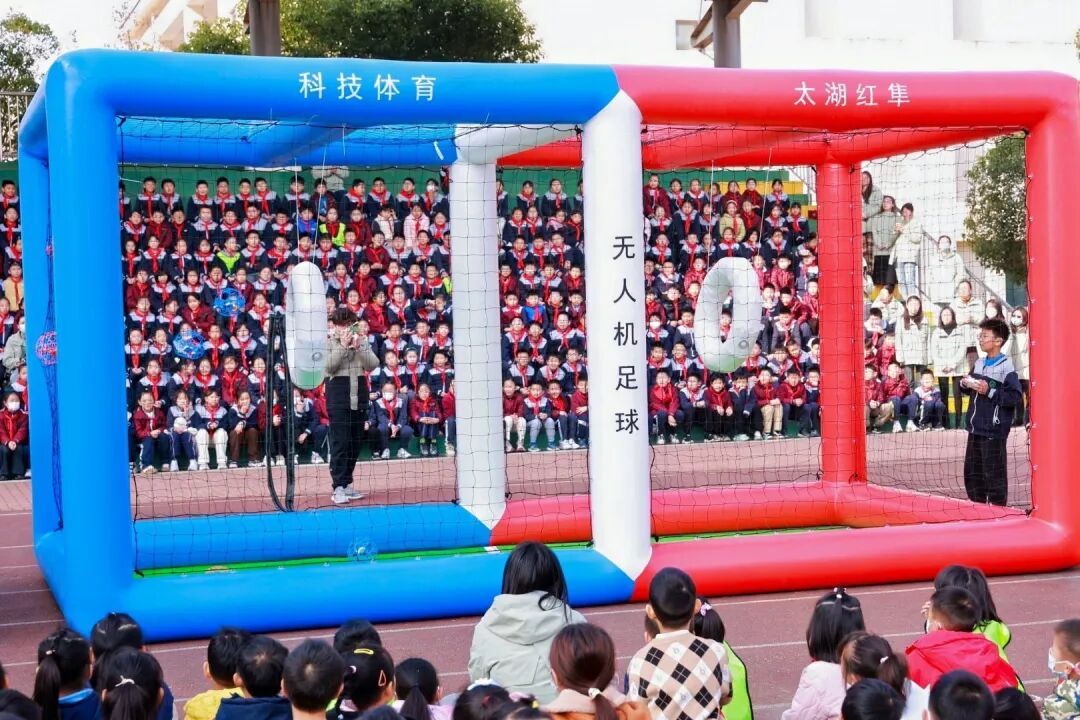 随着党委书记周良良宣布数科节开幕,无人机编队腾空而起,两条寓意深远的条幅垂天而下——“星洋逐梦十一载,科创燃情启新程”与“数智领航千径路,童心筑梦向未来”,不仅诉说着星洋人深耕科创教育的初心,更宣告着以数字智能开辟未来的使命。紧随其后的无人机足球表演,展示了人工智能与体育竞技的巧妙融合,同学们目不转睛,不时发出欢呼。