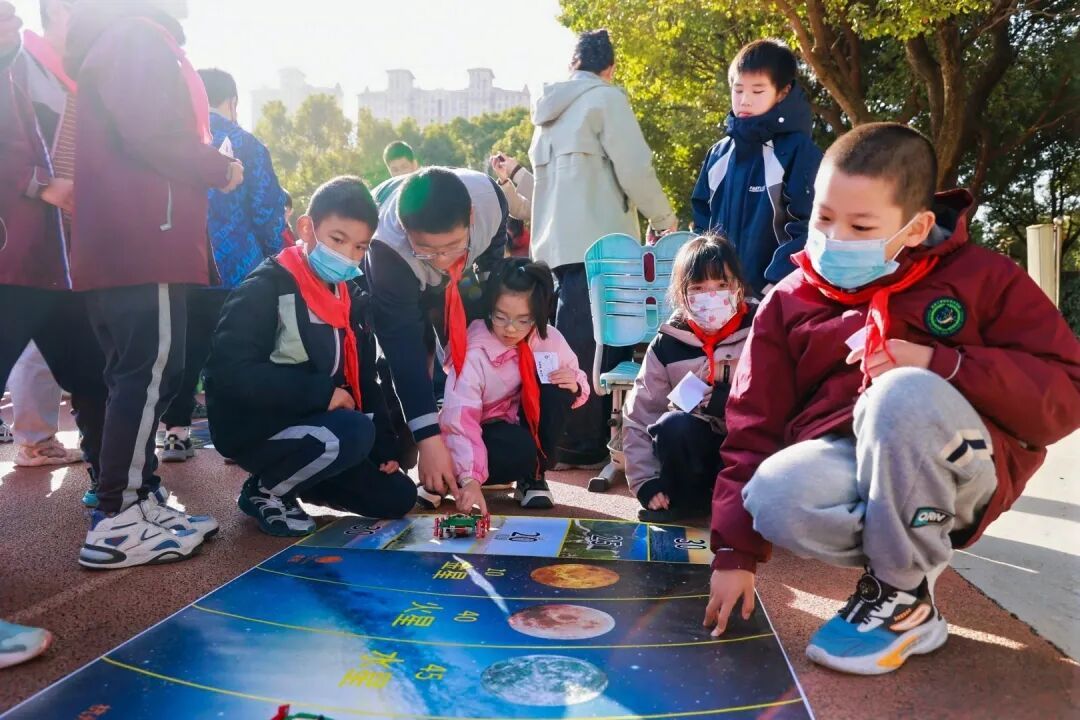 分布在南、北校区的小学游园体验活动更是精彩纷呈。数学类体验中,“24点大擂台”“视图还原大师”“智闯汉诺塔”等项目让同学们在趣味竞技中提升数学运算与逻辑思维能力;科学类体验里,“巧取乒乓球”“钻木取火”“智能寻轨器”等项目备受追捧,同学们在亲手操作中直观感受流体力学、能量转化、电路控制的科学原理,将抽象知识转化为具象体验。信息类的二进制读心术、机器人体验(VEX/MAKE X)等活动提供了近距离接触人工智能与编程技术的机会。