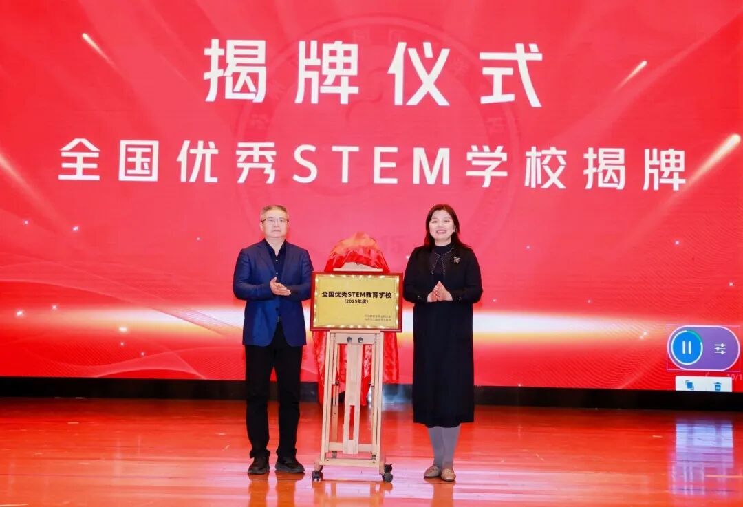 紧接着,激动人心的揭牌仪式举行。江苏省教科院数字教育研究所所长赵华与园区教育局副局长徐晓燕共同为星洋学校“全国优秀STEM教育学校”荣誉揭牌,这一称号既是对学校 STEM 教育工作的高度认可,也是园区推进创新教育的阶段性重要成果。