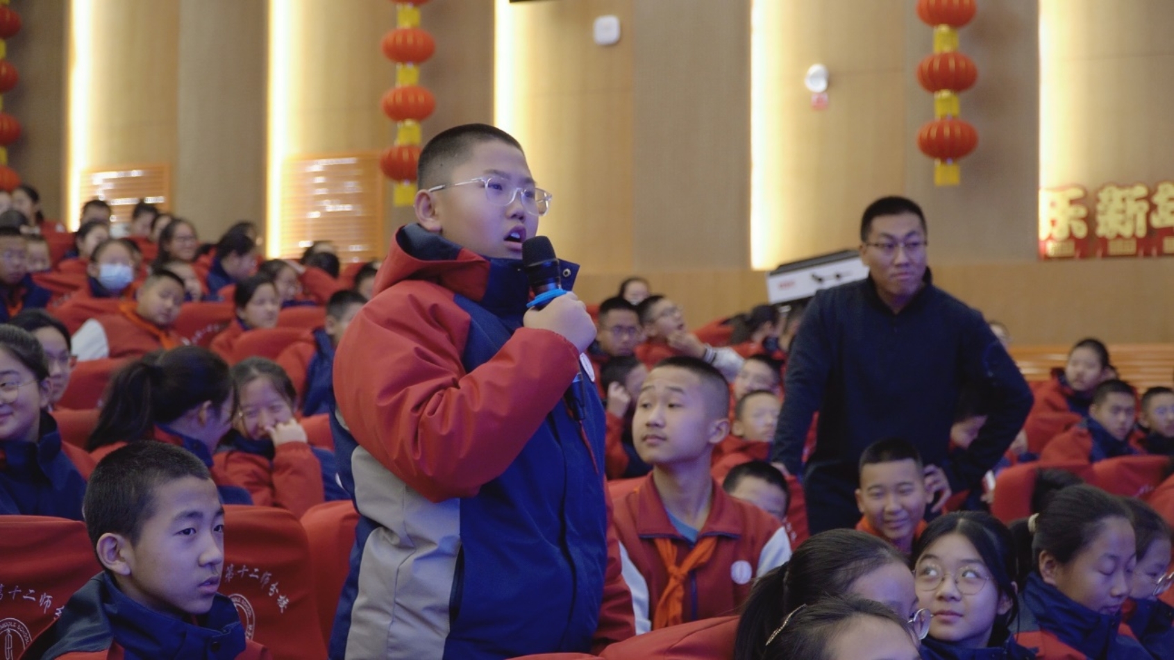 随后,活动主办方为兵团科技宣讲服务队授旗。中国科学院老科学家、原西安卫星测控中心副主任朱民才研究员受邀为现场师生带来以《茫茫太空“放风筝”》为题的科普讲座,用生动易懂的语言拆解航天飞行控制奥秘,从气象卫星、北斗导航的日常应用,到中国航天的发展历程,让同学们深刻认识到航天事业的重大意义,更感受到“两弹一星”“载人航天”等精神的力量。活动现场,同学们热情高涨,围绕航天员太空生活、太空垃圾清理等问题踊跃举手、争相提问,一个个充满探索欲的问题,尽显对航天科学的向往与热爱。朱明才研究员耐心解答每一个疑问,还以自身经历鼓励同学们以红领巾的名义,永葆对科学的好奇与探索精神,争做心怀