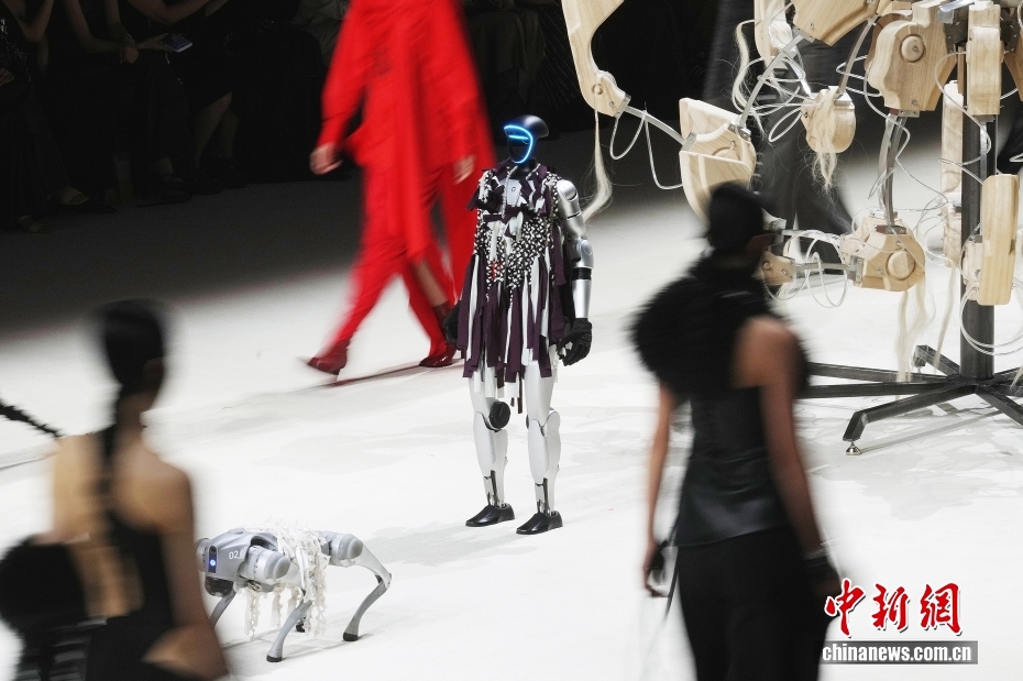 从4月全球首个人形机器人半程马拉松在北京亦庄鸣枪开跑,到8月国家速滑馆“冰丝带”迎来世界人形机器人运动会,再到10月首届中国(国际)机器人辩论大赛上演“人机思辨”——这一年,人形机器人从实验室迈入现实场景,以“量产元年”之势完成了从运动耐力到智能交互的全面跨越。从产线到展厅,从秀场到赛场,多场景、多任务的验证,正将一个人形机器人规模化应用的未来推到我们眼前。图为3月26日,宇树科技G1人形机器人首次亮相上海时装周新天地秀场,并与真人模特共同走上T台,开启人机互动的前卫表达。