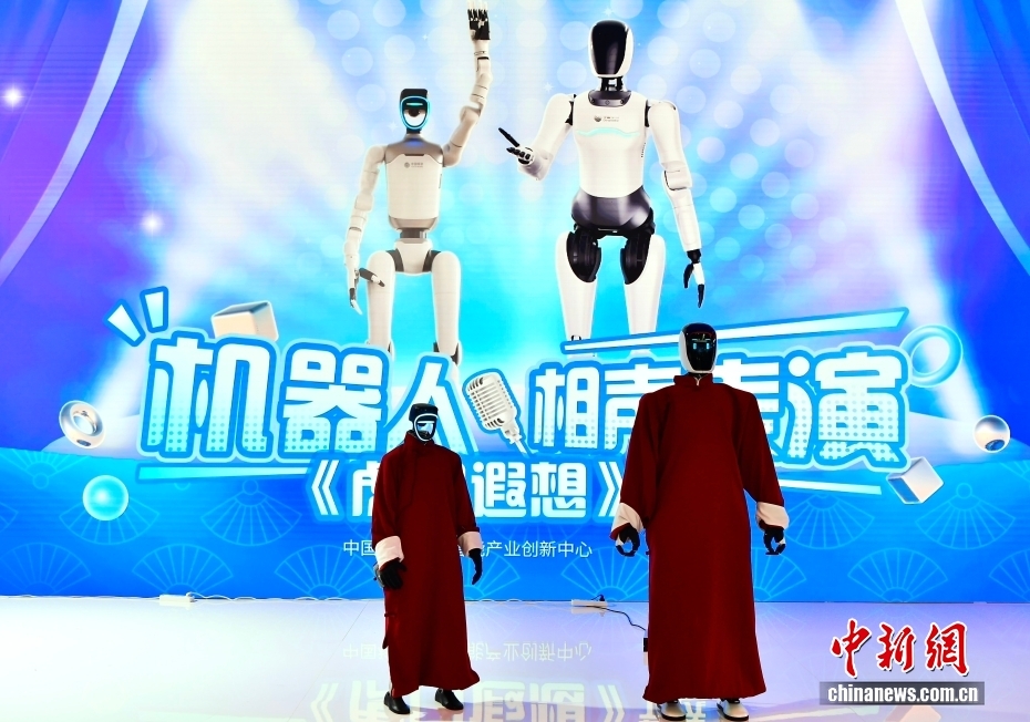 从4月全球首个人形机器人半程马拉松在北京亦庄鸣枪开跑,到8月国家速滑馆“冰丝带”迎来世界人形机器人运动会,再到10月首届中国(国际)机器人辩论大赛上演“人机思辨”——这一年,人形机器人从实验室迈入现实场景,以“量产元年”之势完成了从运动耐力到智能交互的全面跨越。从产线到展厅,从秀场到赛场,多场景、多任务的验证,正将一个人形机器人规模化应用的未来推到我们眼前。图为4月30日,在福建福州举行的第八届数字中国建设峰会现场体验区,人形机器人在表演相声。