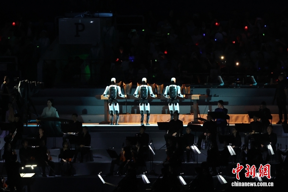 从4月全球首个人形机器人半程马拉松在北京亦庄鸣枪开跑,到8月国家速滑馆“冰丝带”迎来世界人形机器人运动会,再到10月首届中国(国际)机器人辩论大赛上演“人机思辨”——这一年,人形机器人从实验室迈入现实场景,以“量产元年”之势完成了从运动耐力到智能交互的全面跨越。从产线到展厅,从秀场到赛场,多场景、多任务的验证,正将一个人形机器人规模化应用的未来推到我们眼前。图为11月9日,第十五届全国运动会开幕式在广东奥林匹克体育中心举行,机器人在现场表演。