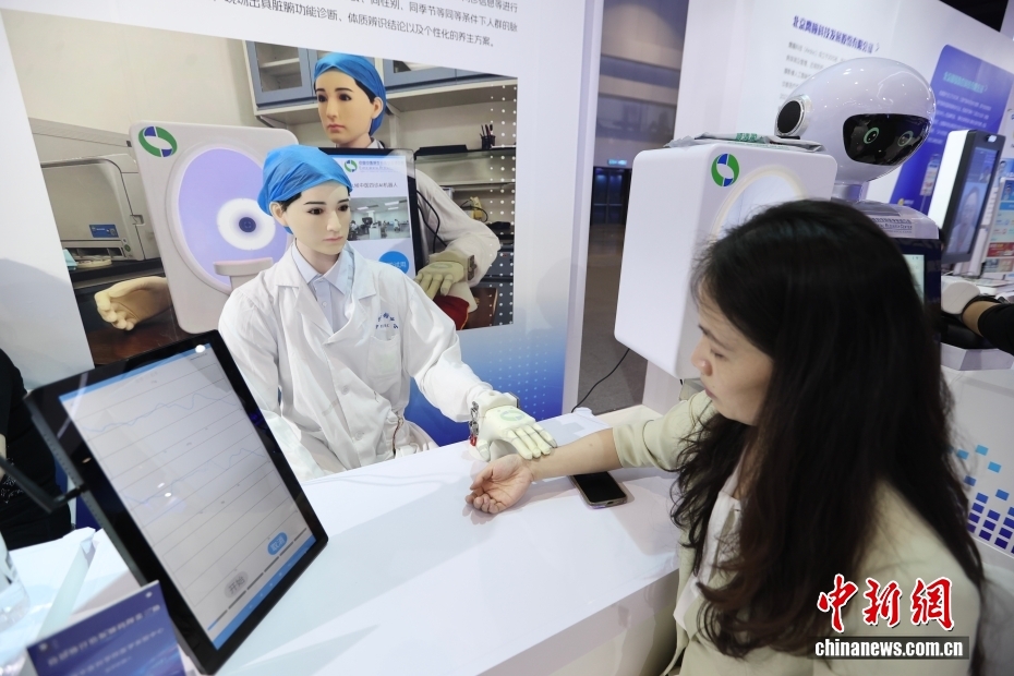 从4月全球首个人形机器人半程马拉松在北京亦庄鸣枪开跑,到8月国家速滑馆“冰丝带”迎来世界人形机器人运动会,再到10月首届中国(国际)机器人辩论大赛上演“人机思辨”——这一年,人形机器人从实验室迈入现实场景,以“量产元年”之势完成了从运动耐力到智能交互的全面跨越。从产线到展厅,从秀场到赛场,多场景、多任务的验证,正将一个人形机器人规模化应用的未来推到我们眼前。图为5月8日,中医四诊AI机器人亮相北京科博会。