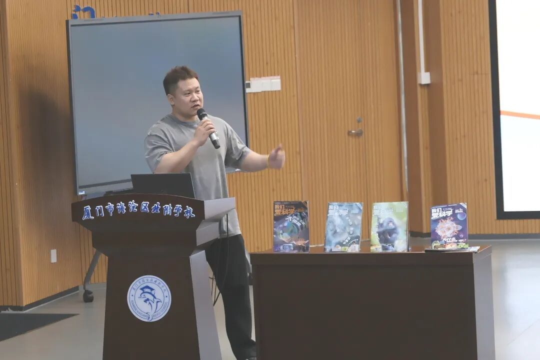 3月31日,中国少年儿童新闻出版总社《我们爱科学》杂志资深编辑团队 —— 张铭宇老师、李伟老师,带着满满科学干货,走进海沧区北附学校未来海岸校区、沧江科技小学,为三、四年级696名学生,献上两场别开生面、趣味十足的科普盛宴!本次讲座以一本杂志是如何诞生的?、科学不枯燥:从好玩到了不起科学为主题,让孩子们在轻松欢乐的氛围里,解锁科学奥秘,种下探索未知的种子。