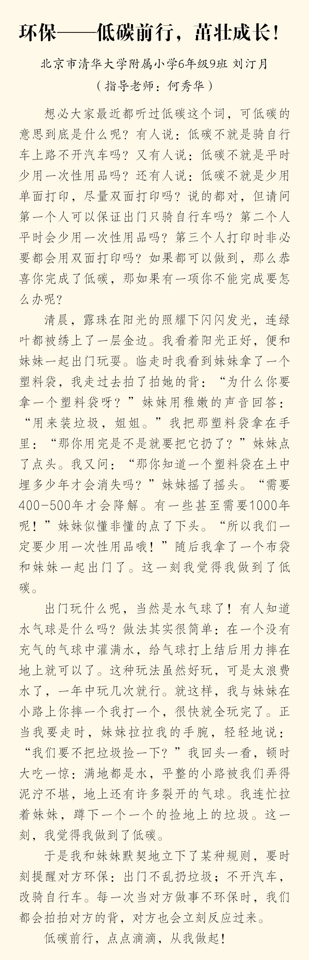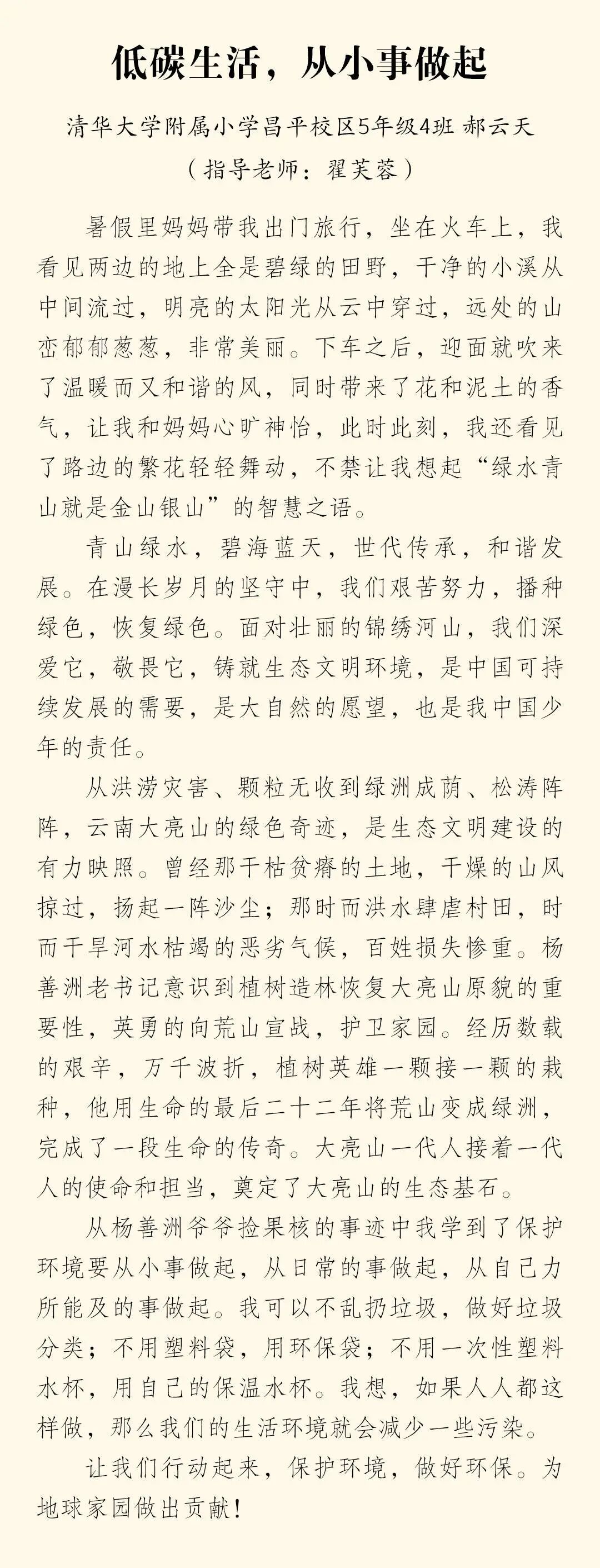 清华附小&中少总社 “碳路前行” 文化作品征集活动已于10月8日圆满收官!本活动自9月8日启动以来,在短短一个月的时间内得到了全国各地少年儿童的热烈响应和积极参与。