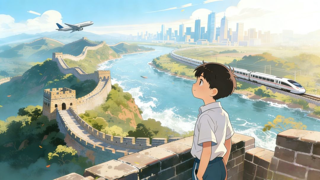 我们的祖国母亲,有着五千年绵延不绝的灿烂文明。古老的汉字,一笔一画都藏着华夏的故事;万里长城,像一条巨龙伏在青山上,守护着我们;长江黄河,日夜奔流,像母亲永不停歇的血脉。这片土地山川秀美、物产丰饶,五十六个民族一起守护着我们共同的家。