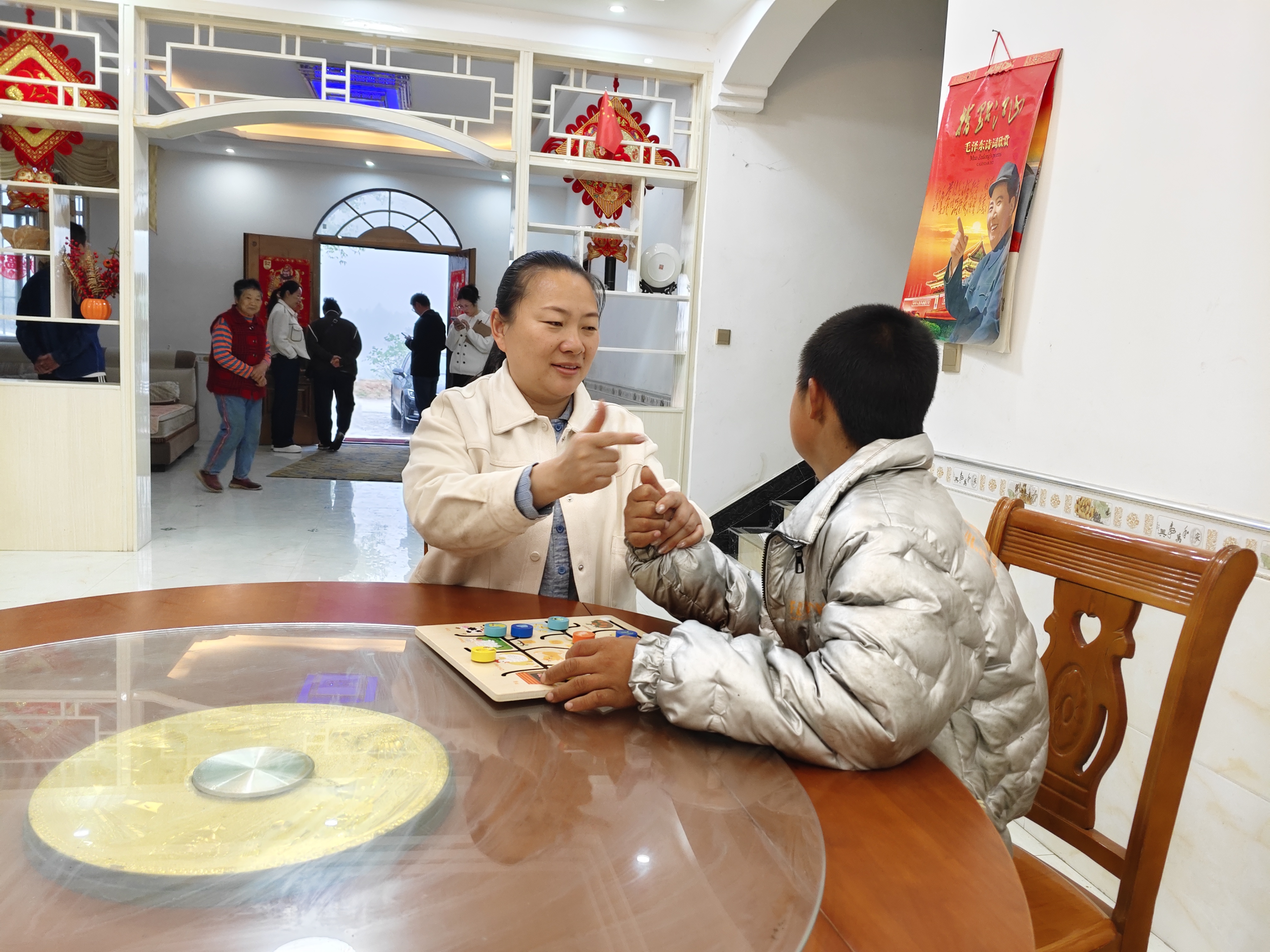 “严老师,下这么大的雨,您还是来了,真谢谢您!”4月8日下午,一场强雷阵雨突然降临,商城县达权店镇的乡间小路泥泞难行。商城县特殊教育学校教师严玲,怀里紧紧抱着用塑料袋裹好的教具、课本和康复训练手册,如约走进了14岁自闭症少年小豪的家。小豪的奶奶急忙打伞相迎,严玲的声音像春日暖阳,瞬间驱散了屋里的沉闷:“小豪,看你的手多脏啊,咱们洗一洗吧!”蜷缩在厨房角落的少年,慢慢抬起了头,和她一起走向水池,眼神里少了往日的躲闪,脸上露出久违的喜悦。“答应了孩子的,哪能不来?”严玲笑着擦了擦脸上的雨水,熟练地把客厅收拾成临时课堂,“今天我们接着练握笔写字,再做几个感统小游戏,好不好?”