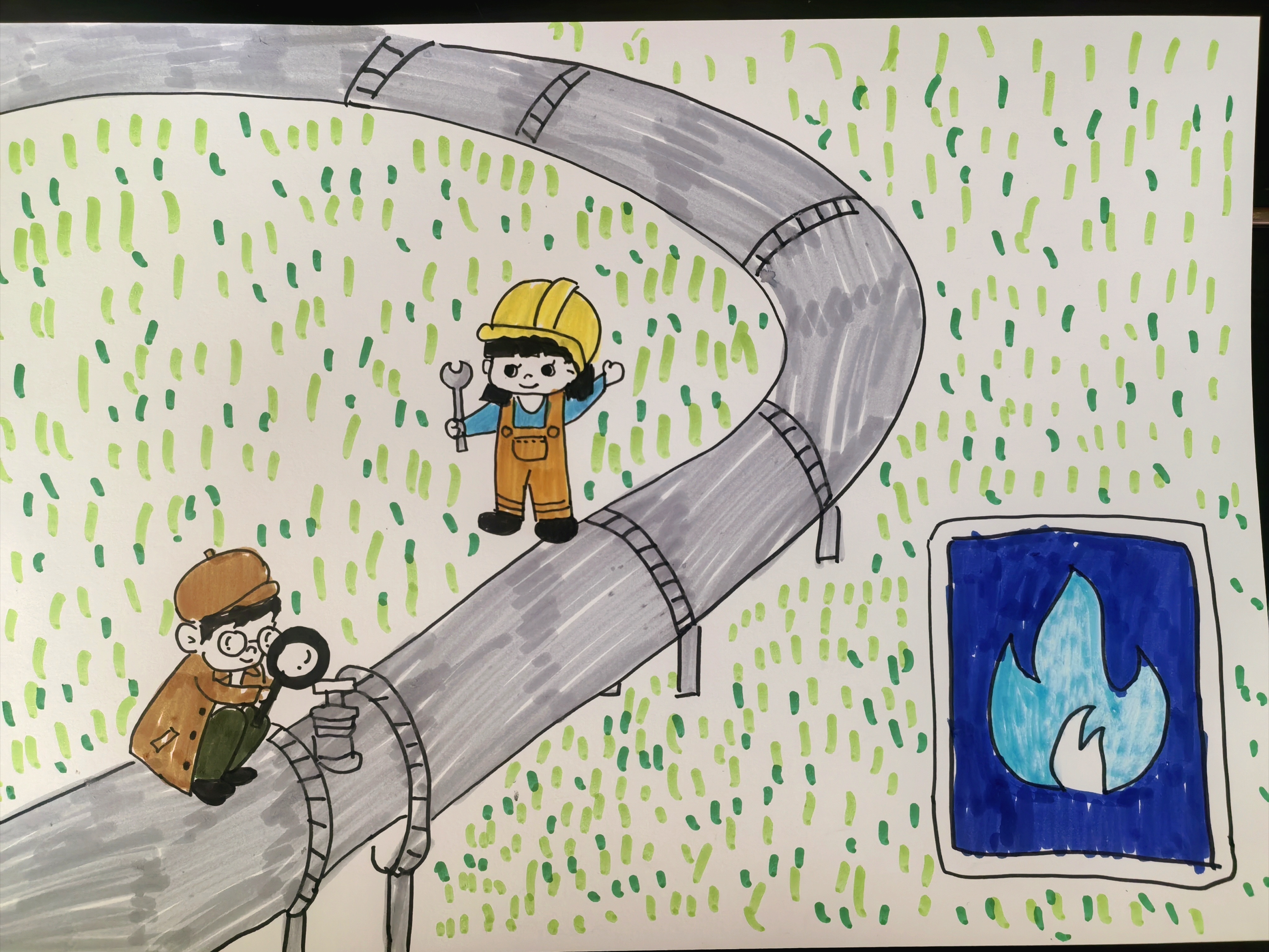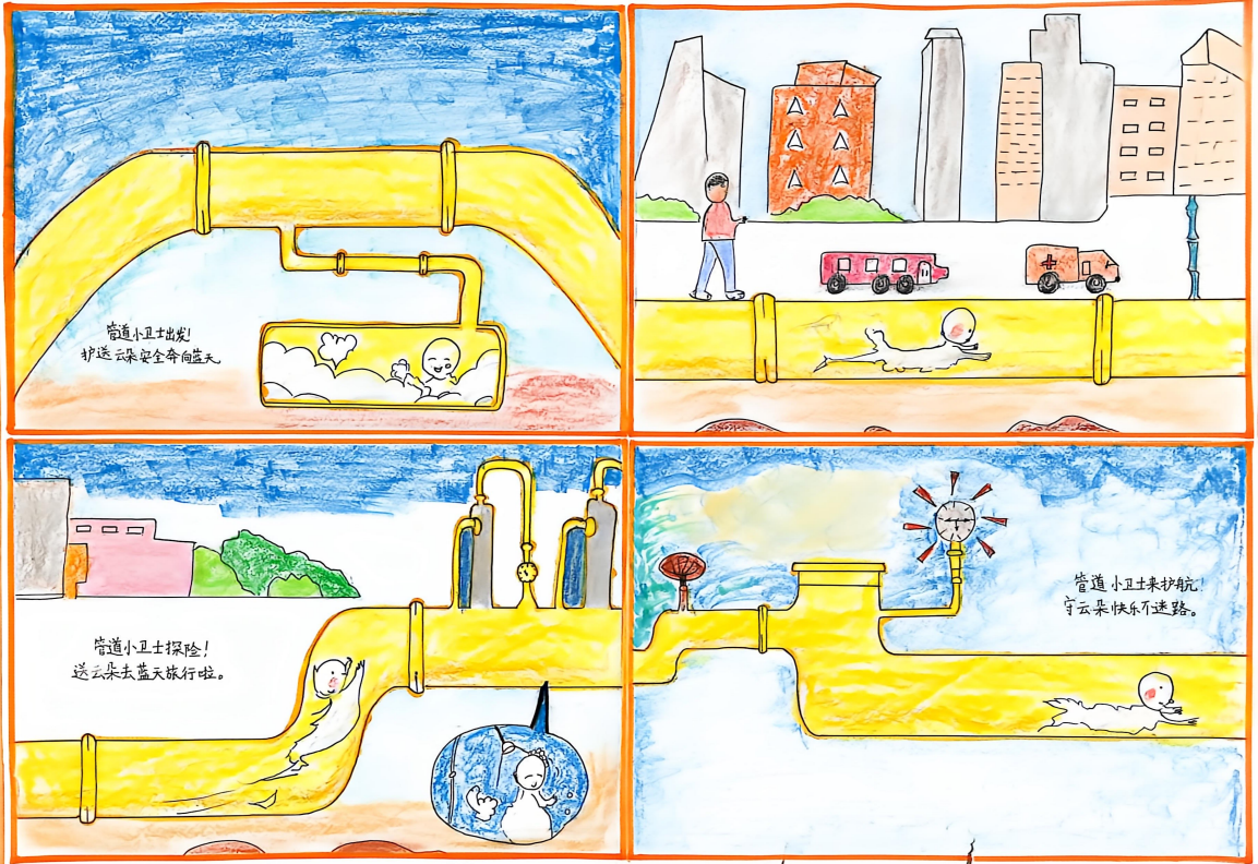 同学们化身“管道小侦探”,用敏锐的观察力捕捉细节;担当“管道小卫士”,用清晰的笔触描绘守护之道;畅想“未来设计师”,用绚丽的色彩勾勒智慧蓝图。每一份绘画、每一篇文章、每一个视频,都承载着同学们对国家能源动脉的关切,闪烁着新时代少年独有的责任感与创造力。