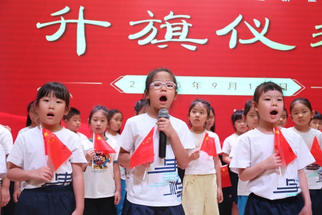 9月15日,史家实验学校高、低年级部的操场,“铭记九一八 吾辈当自强”主题升旗仪式庄严肃穆。队员们用饱含深情的诗朗诵表达了对那段屈辱历史的愤慨,激情澎湃的呐喊是对新时代少年的激励。难忘抗战岁月,难忘抗战英雄。