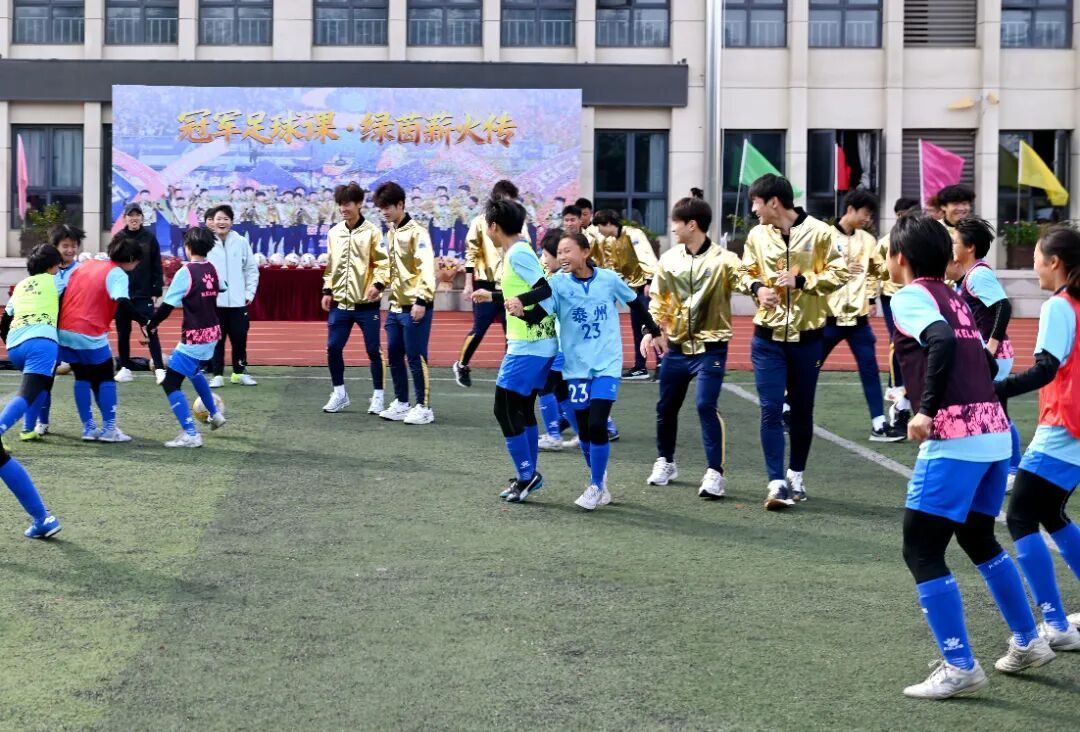 在这个金色的收获季节,泰州多所学校的绿茵场上沸腾着前所未有的激情与梦想。11月3日起,刚刚夺得首届江苏省城市足球联赛(“苏超”)冠军的泰州足球队,带着胜利的荣光与拼搏的热忱,相继走进校园参与“冠军足球课·绿茵薪火传”主题活动,首站来到泰州实验学校为少先队员们带来了一堂生动而深刻的体育精神课。