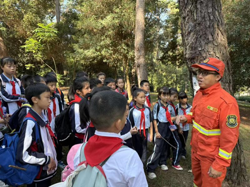 “遇到山火如何逃生”“森林火灾报警电话”……队员们认真学习森林火灾防范避险攻略,了解引发森林火灾的原因、森林防火的基本知识,深刻认识到森林防火的重要性。