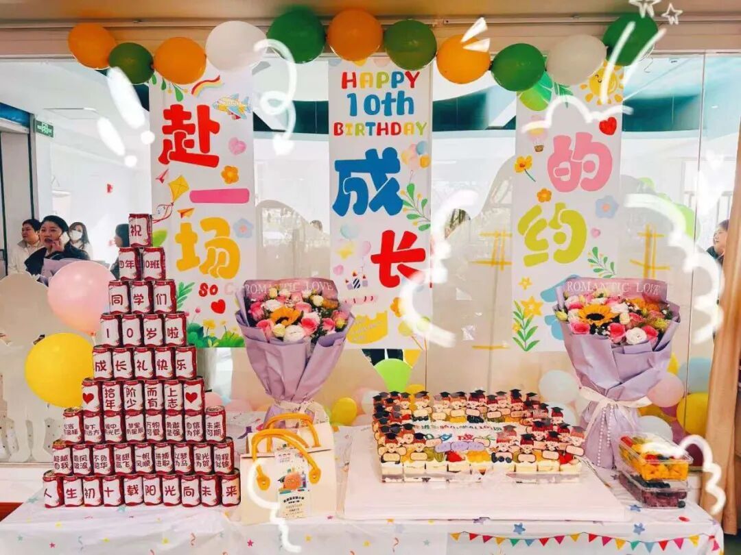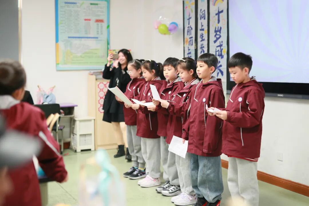 最温馨的环节莫过于集体庆生。歌声过后,孩子们在学生代表的带领下庄严宣誓,坚定的誓言回荡在每个人心间。随后,他们迈过寓意深远的“成长行善”拱门,从老师手中接过寄托祝福的成长果,并用合影的方式,为十岁这个人生的里程碑刻下了最温暖的印记。