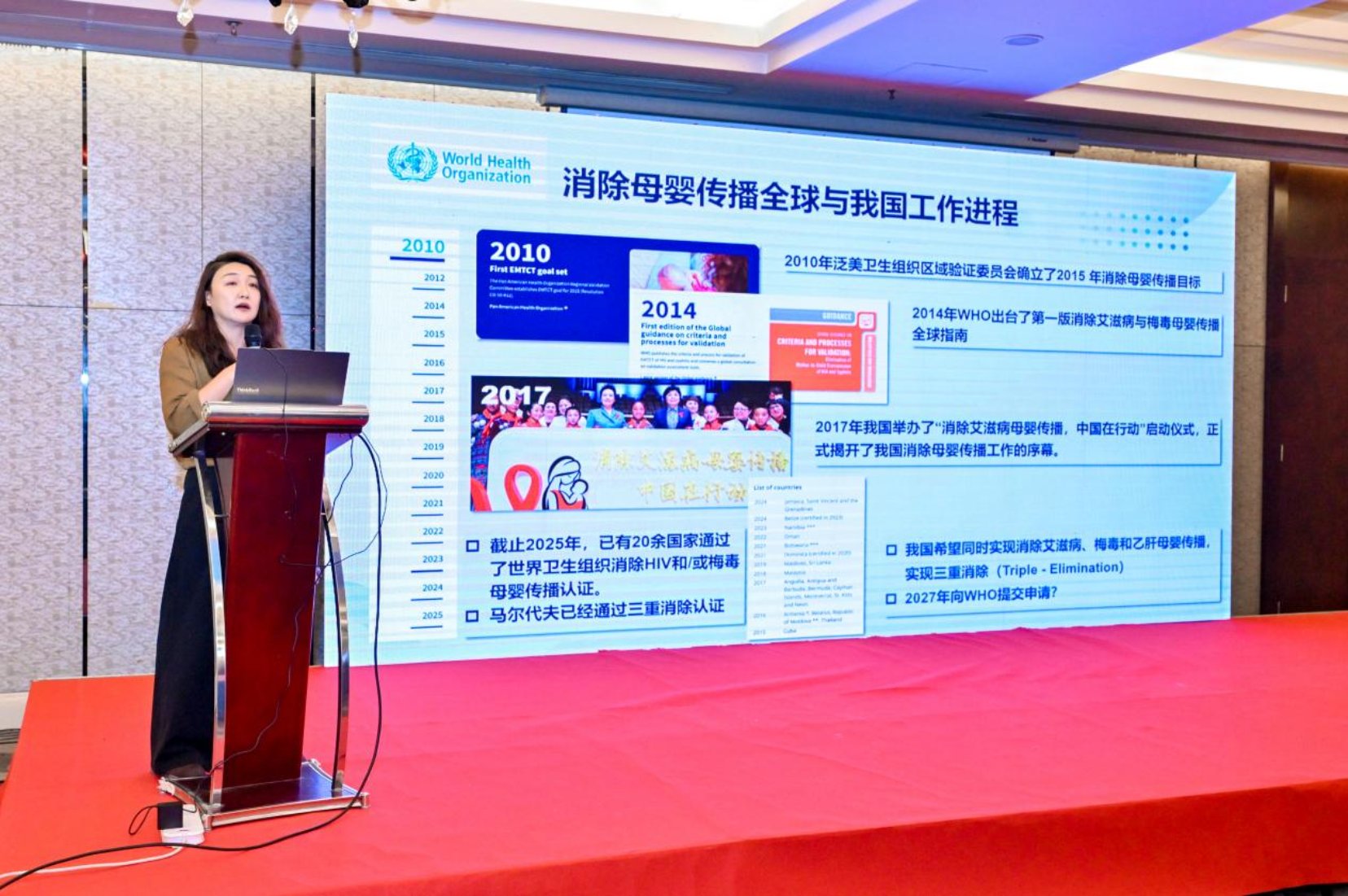 此外,活动现场还邀请到北京妇幼保健院副主任医师张雪,分享其在消除艾滋病、梅毒和乙肝母婴传播方面的经验。张雪表示,在管理机制方面,妇幼、疾控和社区在防治艾滋中应该共担责任,结合实际制定本地区、机构消除母婴传播工作方案,明确目标、策略和职责,妇幼系统应联合疾控系统共同开展质控与培训;在规范服务和数据管理方面,应定期核对、分析5岁以下阳性儿童及感染育龄女性的数据,针对数据问题提出改进建议,HIV检测人员应具备提供正确咨询结果服务的能力。
