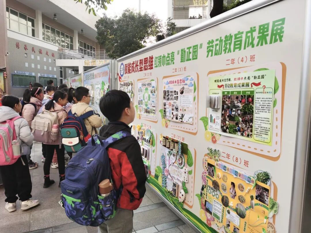 以劳树德,以行践知。一学期的悉心照料,一学期的躬身实践,终在校园里绽放累累硕果。为全面展现各班“勤正园”责任田劳动种植成效,让同学们在劳动成果的分享与交流中体悟付出的价值、收获的喜悦,我校开展了“赋能成长型思维,红领巾点亮‘勤正园’”劳动教育成果展,用一抹抹鲜艳的红领巾,绘就劳动教育最美画卷。