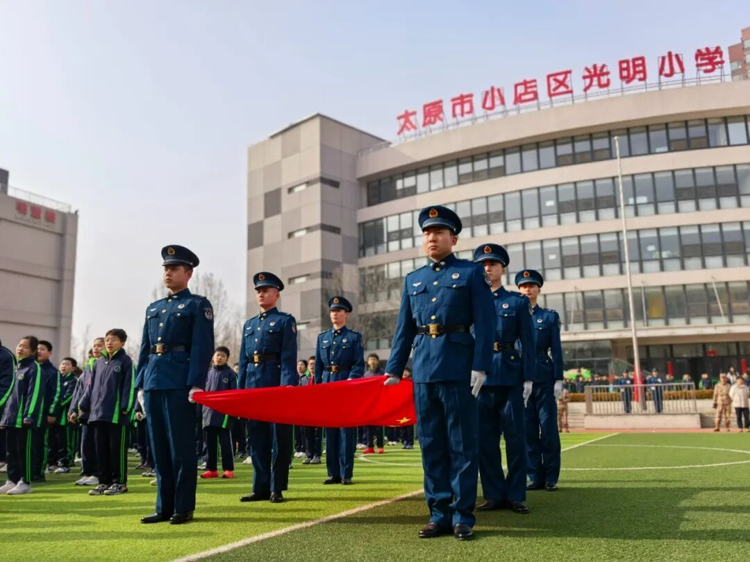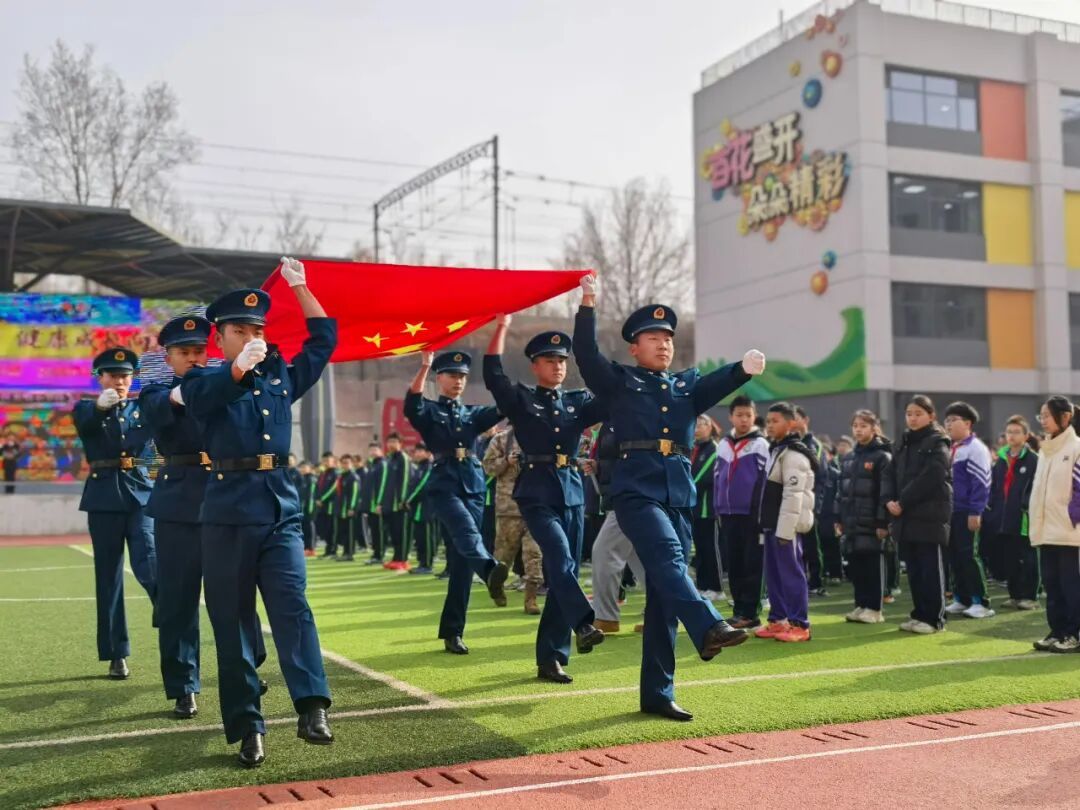 开学典礼在庄严的升旗仪式中拉开帷幕。学校特别邀请双拥共建单位驻并某部官兵担任升旗手,伴随着雄壮的《义勇军进行曲》,五星红旗冉冉升起,全体师生肃立行礼,浓浓爱国情在校园中升腾。