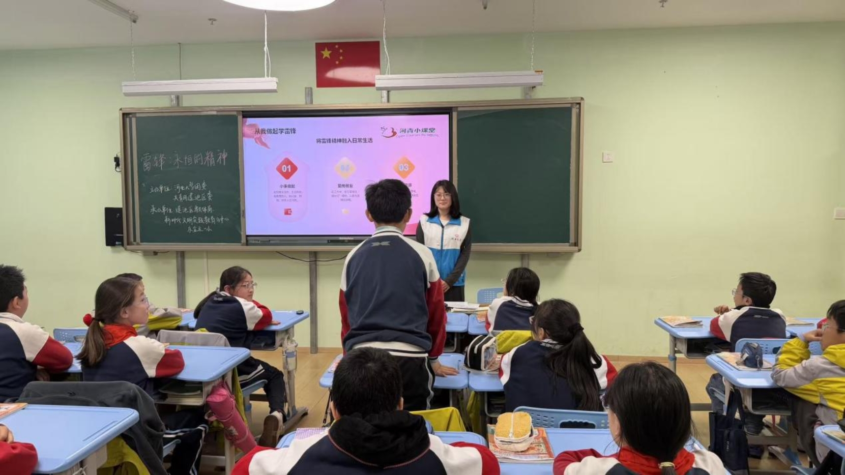 美德教育是河青小课堂的核心内容之一。志愿者团队以雷锋精神、红色故事为引领,通过讲述雷锋故事、解读精神内涵,引导学生发现身边榜样,将奉献、友爱、互助融入日常学习与生活。课程鼓励学生从点滴小事做起,用实际行动传递温暖,树立争做有担当、有温度的新时代好少年的目标,让美德在校园落地生根、蔚然成风。
