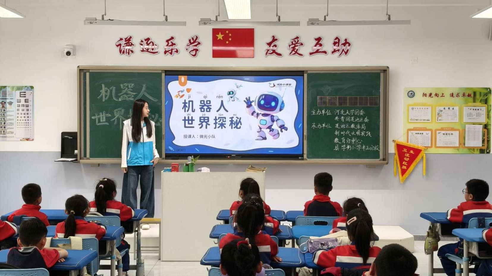 为全面推进素质教育,助力青少年德智体美劳全面发展,共青团河北大学委员会、共青团莲池区委主办,莲池区教育和体育局、莲池区新时代文明实践教育体育分中心、莲池区少工委和多所小学承办开展了河青小课堂志愿公益品牌活动。河北大学青年志愿者团队以美德涵养、科学探秘、生态环保、文化传承、安全健康五大主题为核心,走进莲池区多所小学开展系列课程,用趣味教学与暖心陪伴,为孩子们搭建起开阔视野、提升素养、浸润心灵的成长平台。