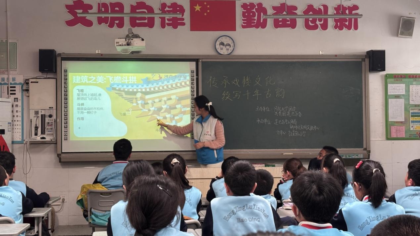 从清明节习俗、中医药文化、传统绘画艺术,到保定淮军公所古戏楼建筑智慧、河北梆子、保定老调等本土戏曲文化,志愿者以故事讲解、互动实践、特色赏析等形式,让学生感受传统艺术魅力、了解非遗与文物价值,增强文化认同感与传承意识,让文脉在青少年心中扎根。