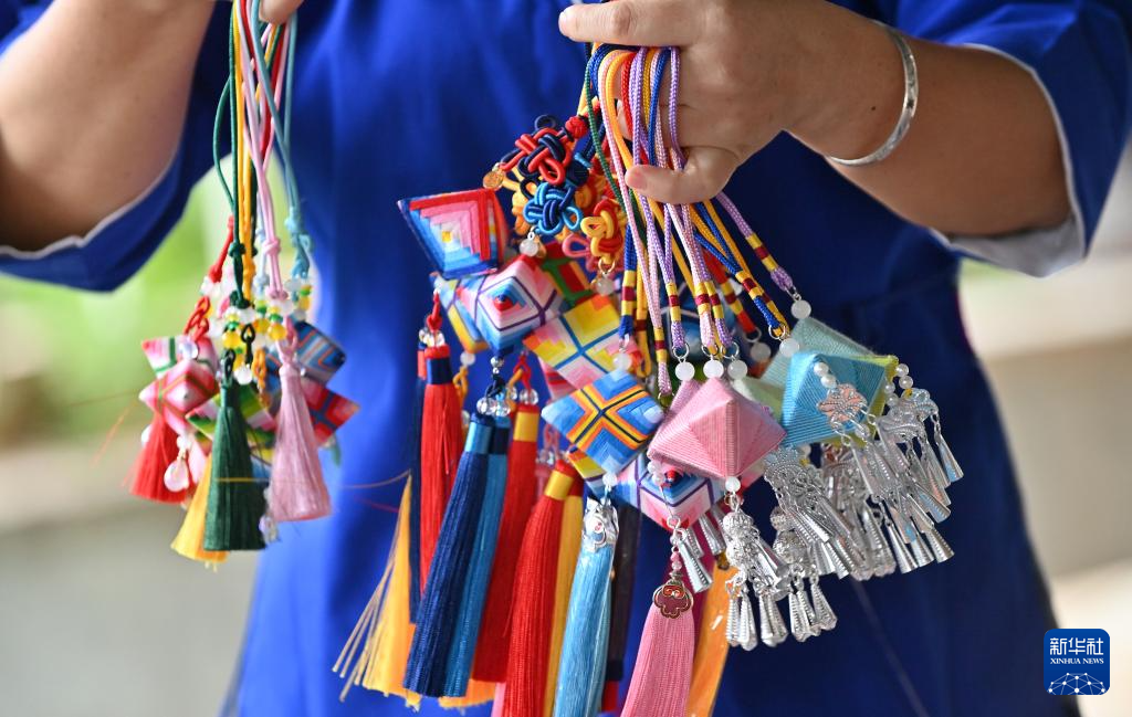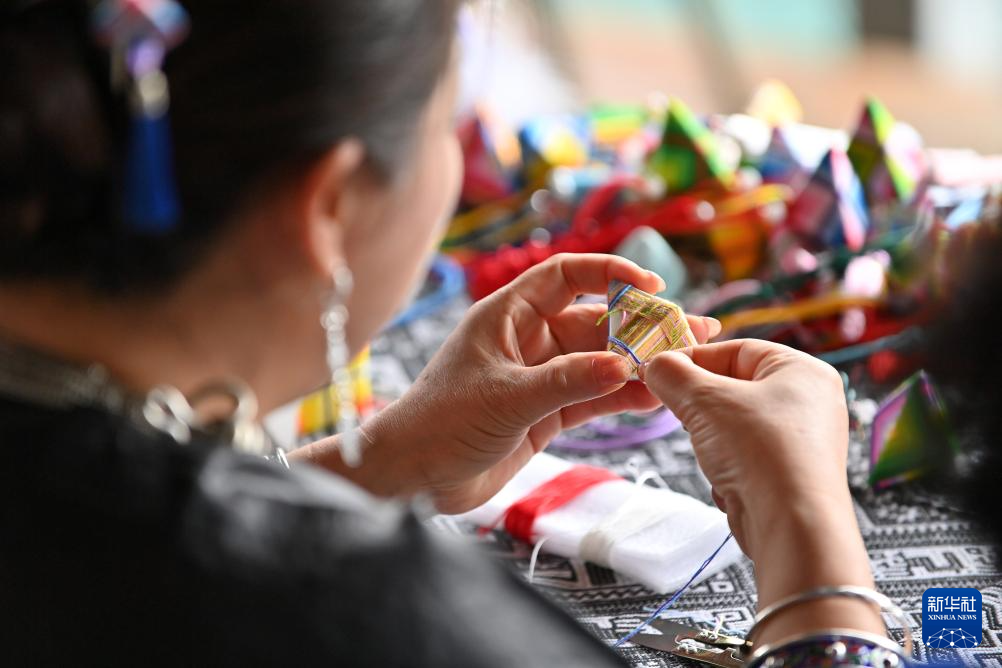 侗族吉祥花是广西三江侗族自治县的传统手工艺品,由心灵手巧的侗族女性一丝一线编织而成,融侗族印染、刺绣、织锦等技艺于一体,最早用来悬挂在风雨桥、鼓楼等公共建筑中,是祈求风调雨顺的吉祥饰品,其制作技艺列入柳州市非物质文化遗产代表性项目名录。近年来,广西三江积极研发文旅产品,侗族吉祥花从传统的公共建筑挂饰变成人们身上的寻常饰品,日益热销文旅市场。