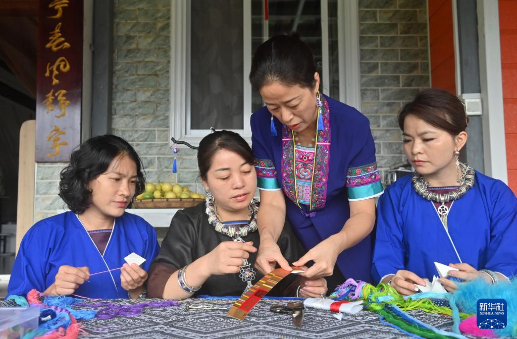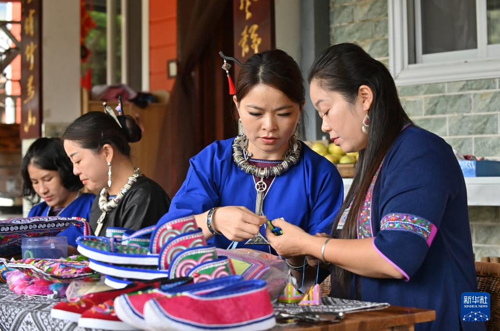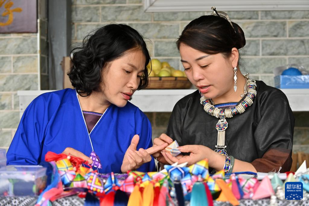 9月24日,在广西三江侗族自治县八江镇三团村,当地村民制作侗族吉祥花。
