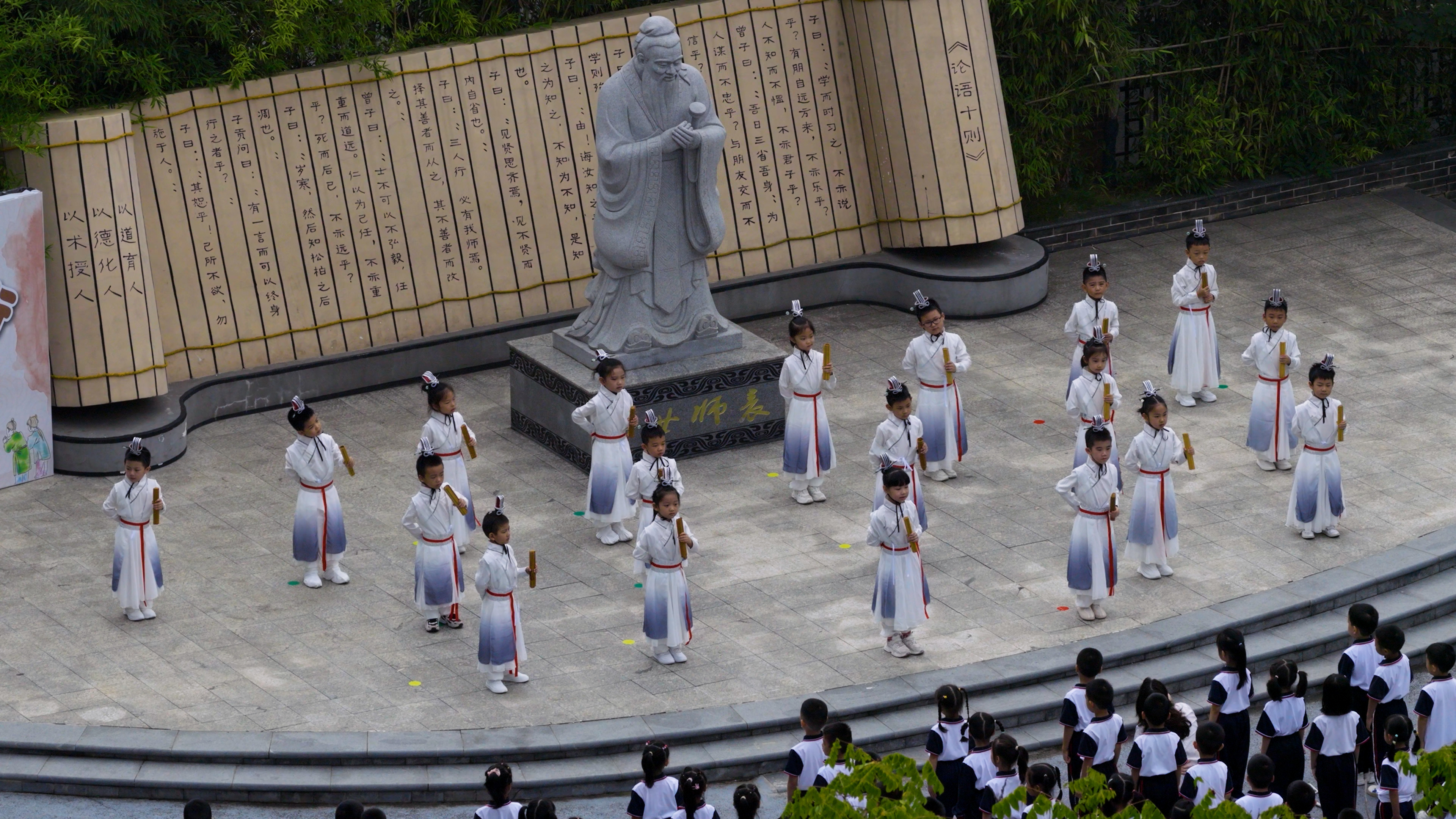 9月28日,正值孔子诞辰日。湖南省岳阳市岳阳楼区朝阳小学的德育实践基地——孔子文化广场,迎来了一群天真可爱的小朋友,他们是入学还不到一个月的一年级学生,此时正摇头晃脑地诵读着孔夫子的经典名言,为后续活动做准备。