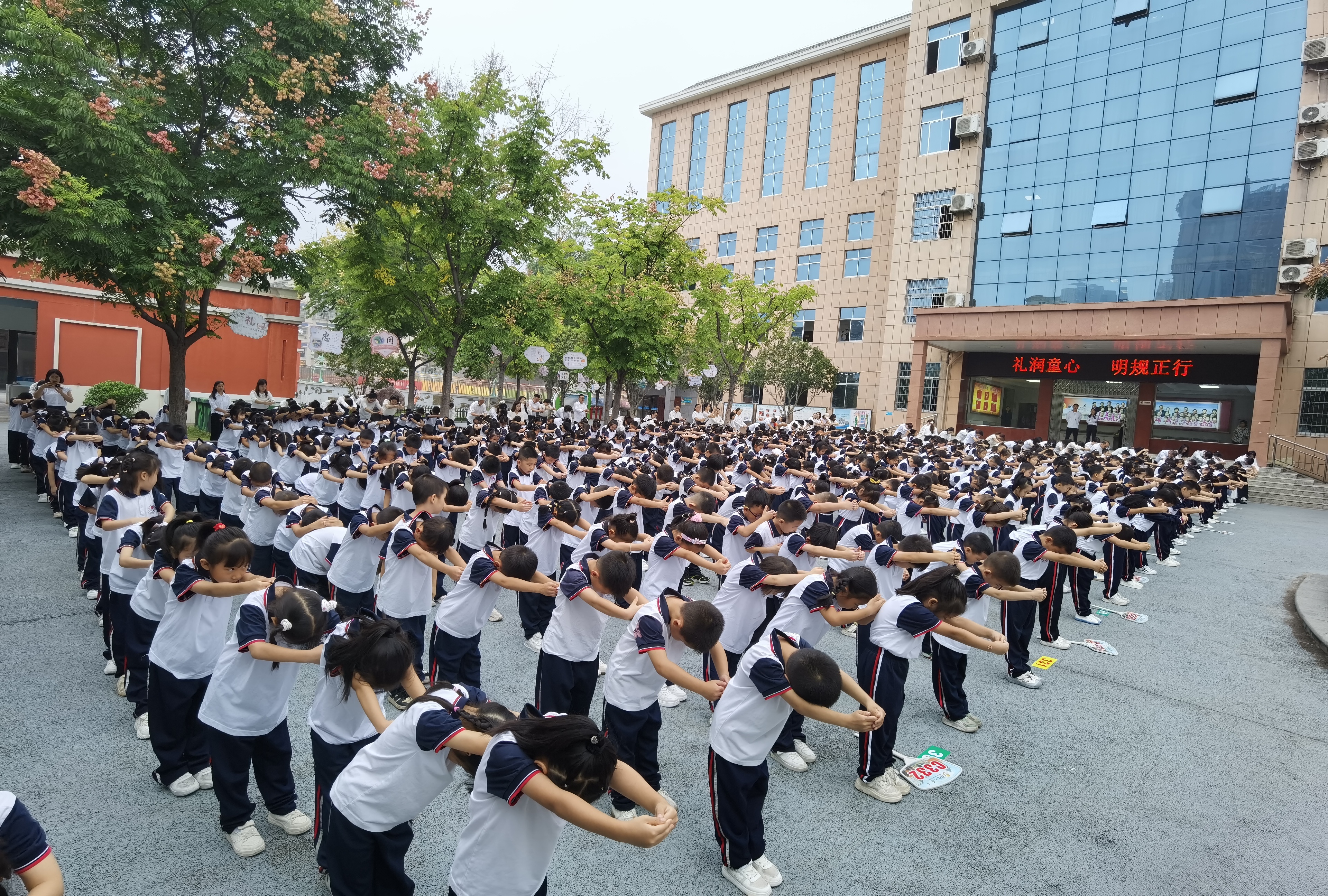 为传承中华优秀传统文化,弘扬尊师重教的优良风尚,自朝阳小学孔子文化广场落成以来,每年孔子诞辰日,学校都会举办纪念活动。今年,学校不仅延续了纪念孔子诞辰暨拜师活动,还新增了队列队形展示活动,将传统文化礼仪与行为规范教育有机融合,为全体一年级新生呈现了一场意义深远、庄重又不失活泼的入学仪式。