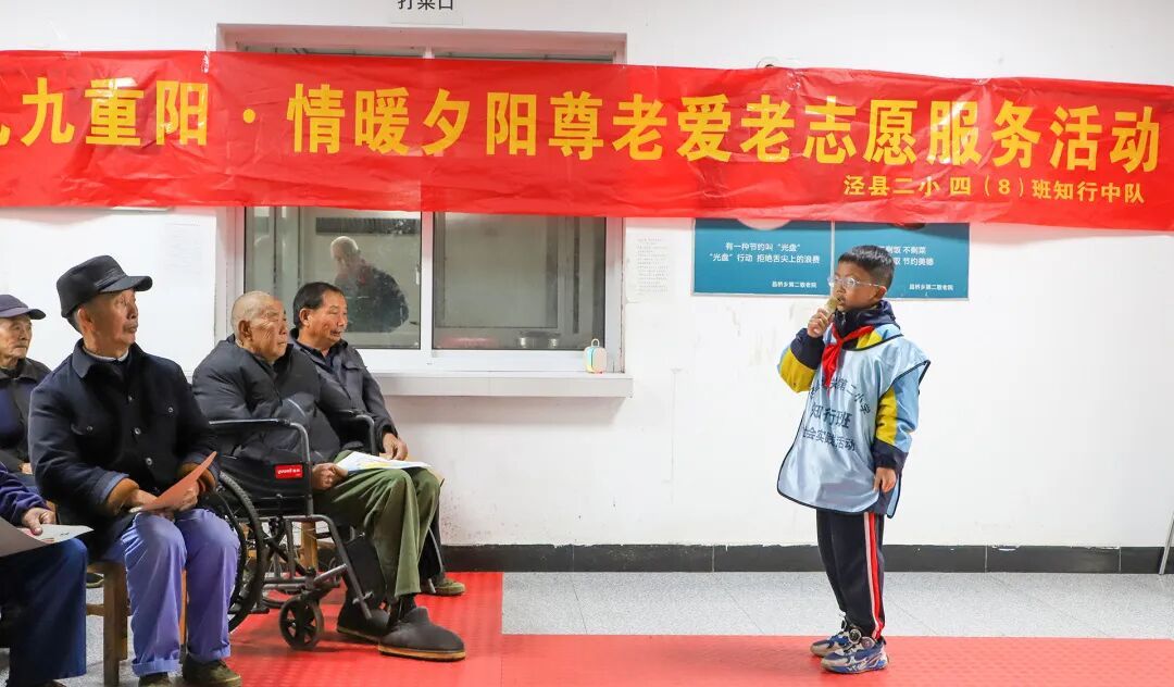 金秋有爽气,重阳情意浓。在这个承载着 “尊老、敬老、爱老” 传统的节日里,泾县城关第二小学四(八)班知行中队的队员们,用一场特别的行动,为泾县昌桥第二敬老院(南湾林场)的老人们送去了秋日里最温暖的陪伴。