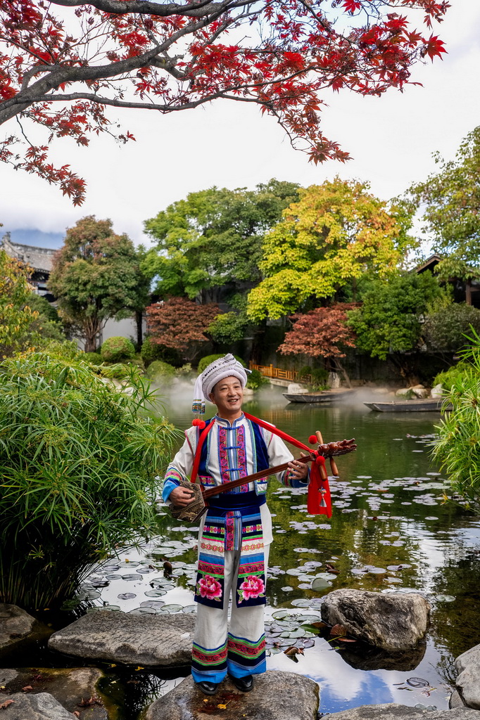 11月23日,石宝山歌会省级传承人李兆元在2025非遗品牌推广周上弹唱。
