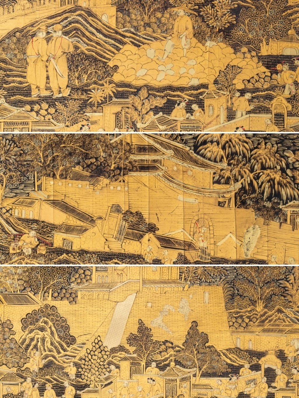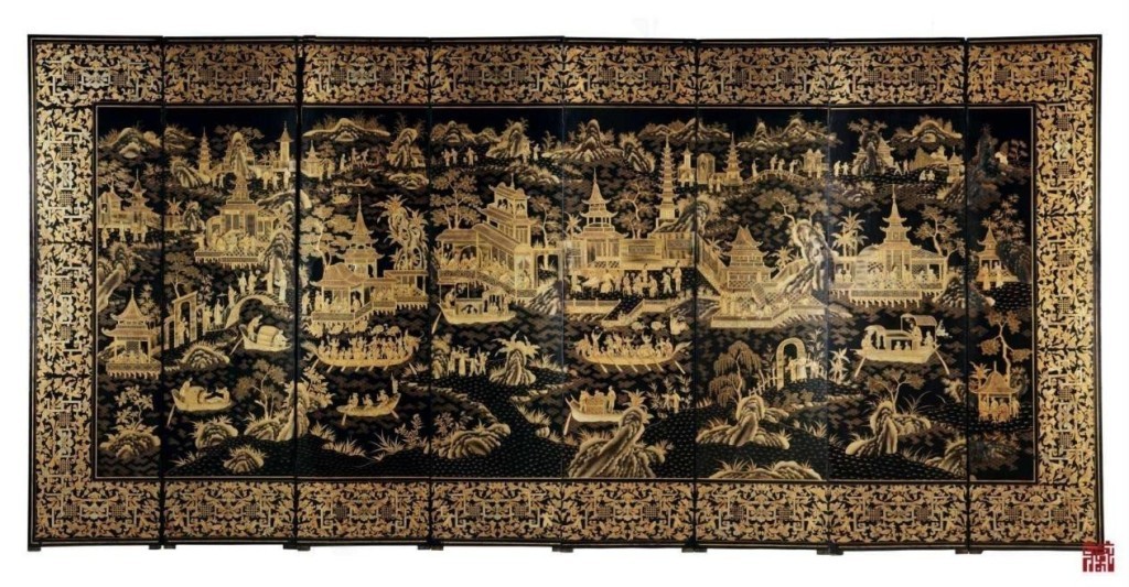 黑漆描金龙舟竞渡图八围屏风 19世纪早期 广东省博物馆藏