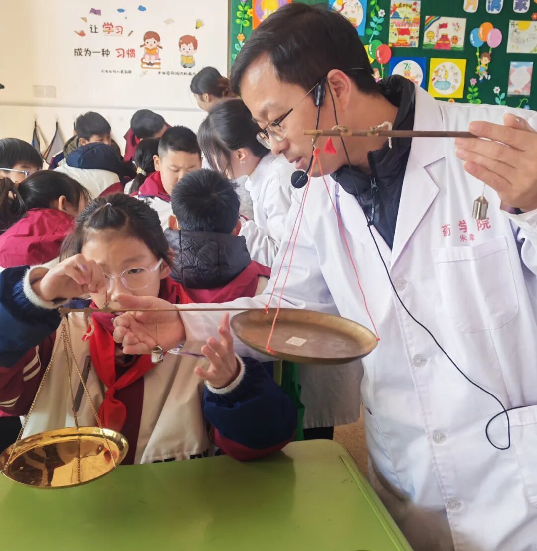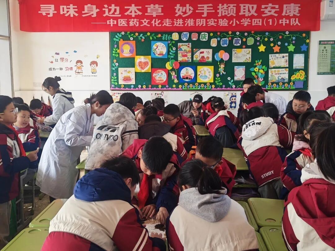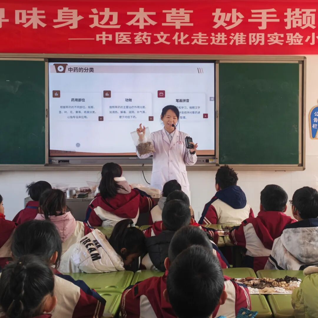 当馥郁的药香飘进明亮的教室;当小小手掌小心翼翼地称量、封装草药;当中医医师用生动的讲解揭开中医药的神秘面纱。少先队校外辅导员带着“中医药文化”走进淮安市淮阴实验小学四(1)中队,一场传统文化的传承之旅正在校园里悄然开启。