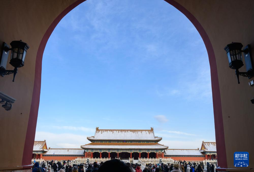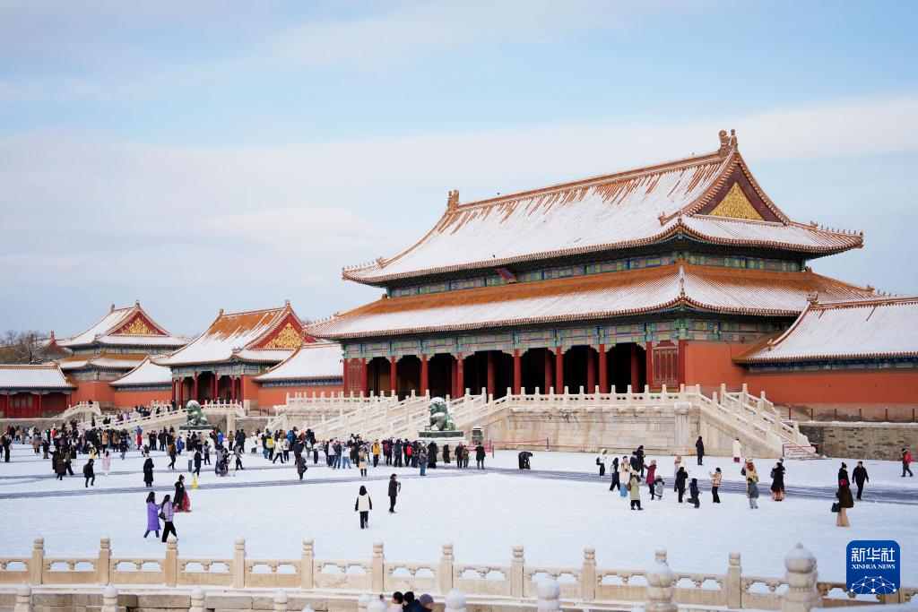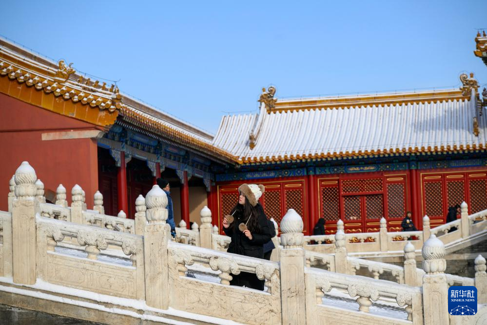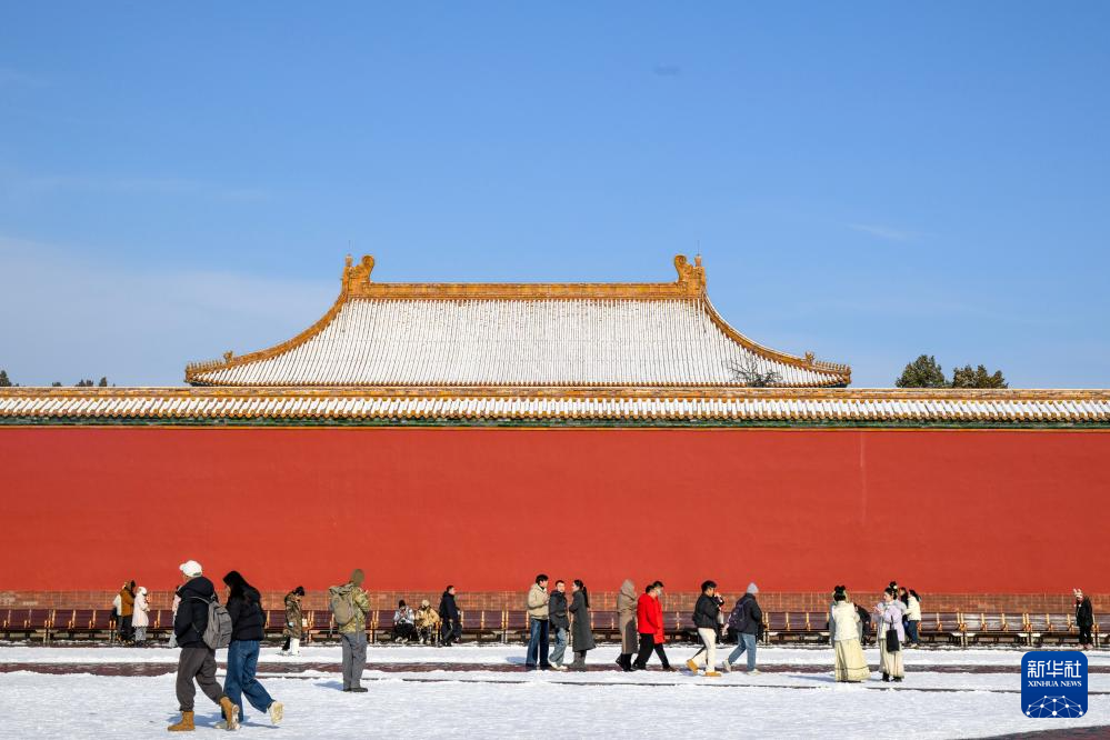 12月13日,雪后初霁,北京故宫迎来了众多游客。人们在雪地上漫步,定格这份冬日限定的美好。