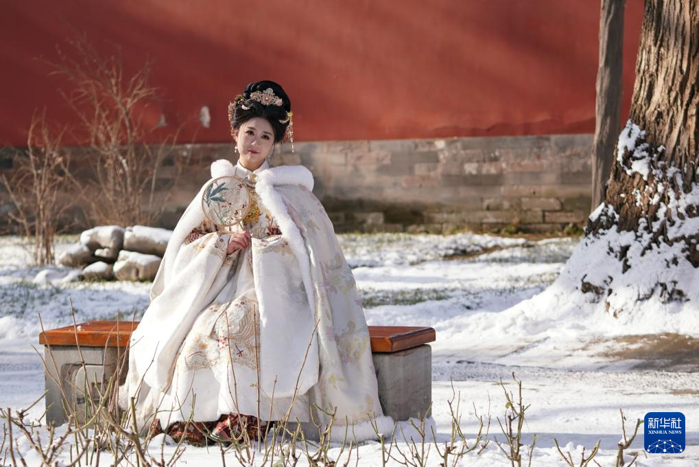 12月13日,游客身着古装在故宫留影。
