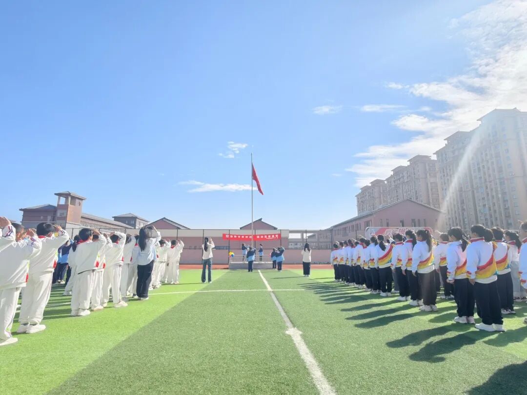 国歌奏响,全体师生面向国旗敬礼,注视着鲜艳的五星红旗冉冉升起,齐声唱响国歌,由衷表达对祖国的热爱之情。