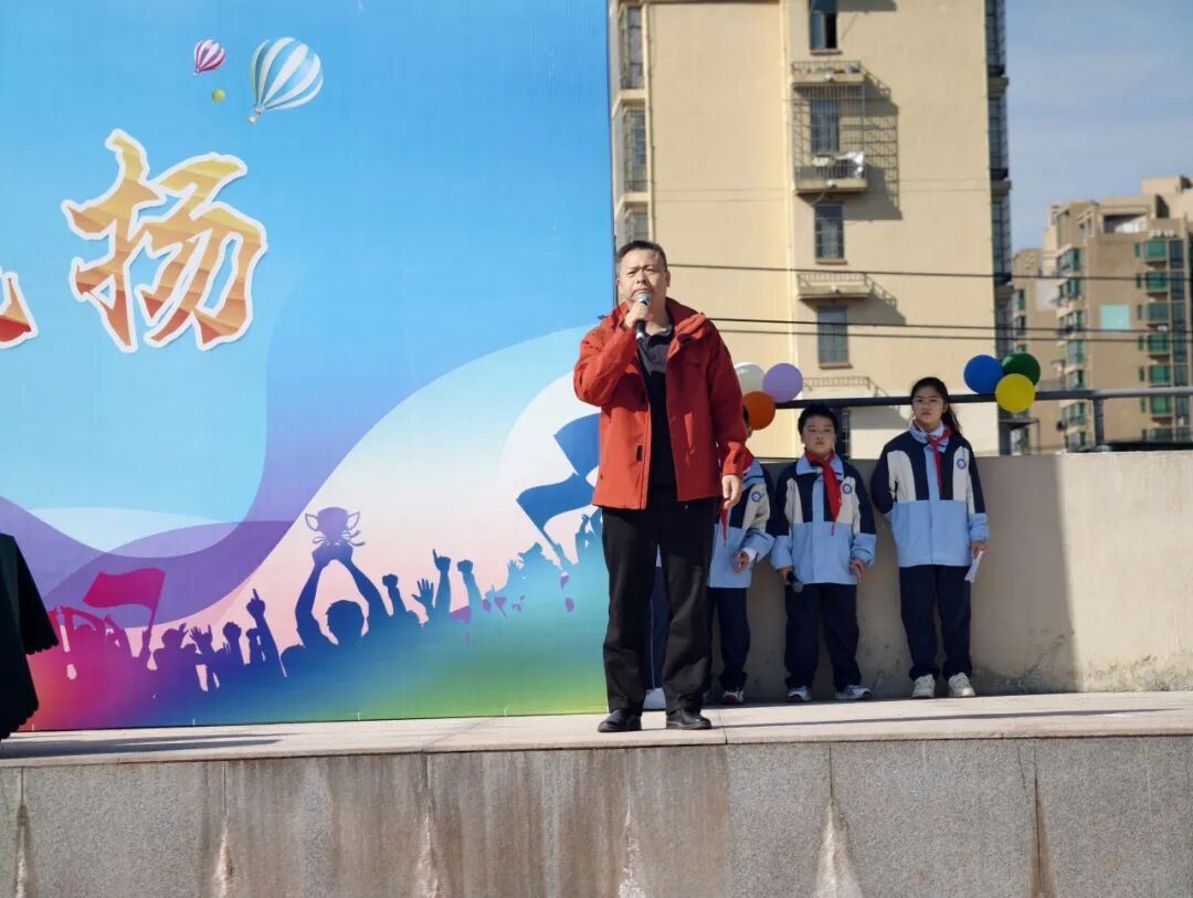 浮梁县第五小学副书记郑良开致开幕辞。他鼓励全体参赛者秉持“友谊第一,比赛第二”的精神,在赛道上全力以赴,在协作中凝聚力量,用拼搏诠释热爱,用欢笑传递快乐。