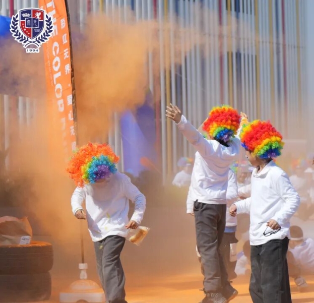 从泳池中破浪前行的矫健身姿,到跑道上并肩作战的默契身影;从彩虹粉末里肆意飞扬的欢笑声,到爱心义卖中温暖传递的善意——这场以色彩与爱心为主题的运动节,让孩子们在运动中收获健康,在色彩中感受快乐,在奉献中体会成长。