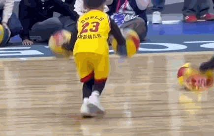 当时表演赛正在进行,一位小朋友的篮球意外滚落。但他没有慌张,而是认真地表演着无实物拍球,继续配合队伍完成队列变换。在换队形的间隙,另一位小朋友利用走位接近了掉落的篮球,只见他小脚一踢,篮球精准地滚向了队友。掉球的小朋友顺势捡回,表演流畅地继续进行。现场随即响起了热烈的掌声。