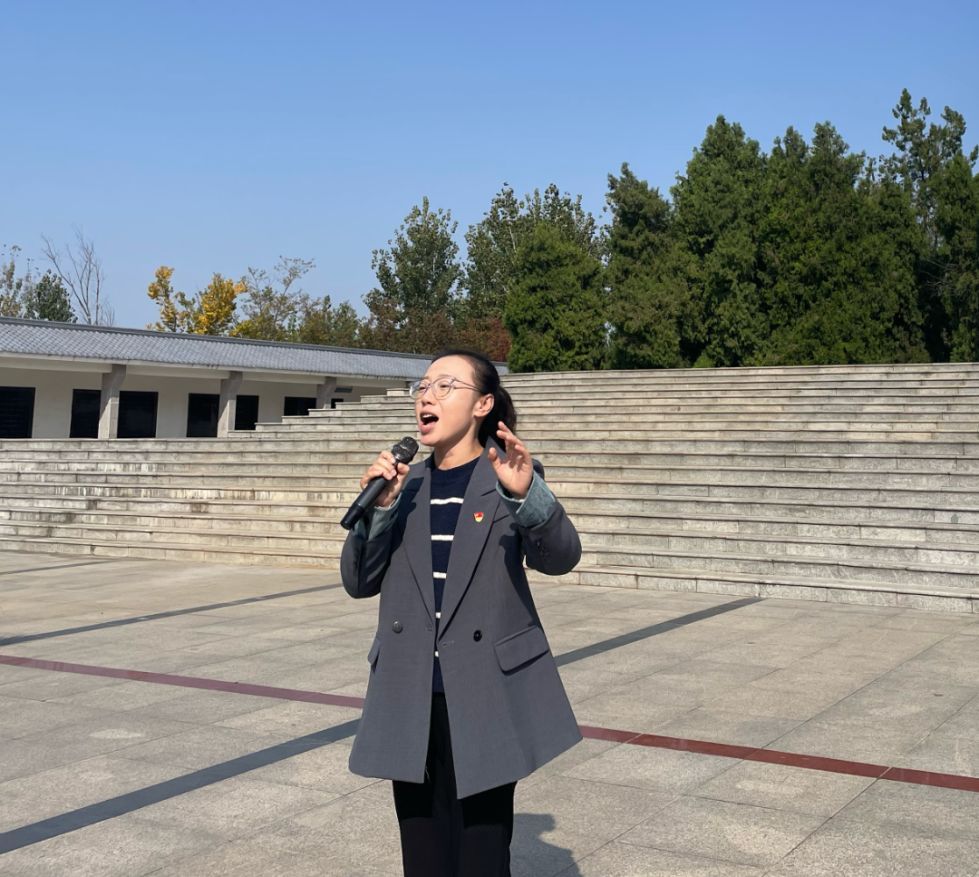 中场休整后,纪念广场上传来激昂的歌声。辅导员段老师还带领队员们唱起了队歌--《我们是共产主义接班人》,激昂的旋律、铿锵的节奏,唱出了他们对革命先烈的敬仰,更唱出了新时代青少年传承红色基因、担当时代重任的壮志豪情。