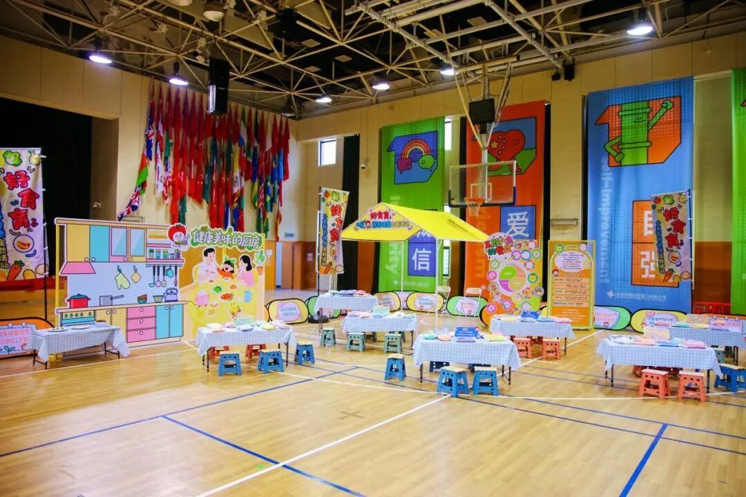 “今天我们学校就像过节一样,我最喜欢‘健康美食小镇’的体验活动!”