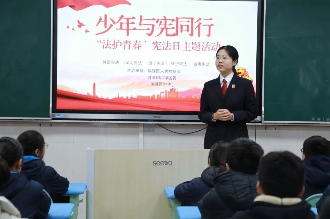 为迎接第十二个“国家宪法日”,弘扬宪法权威,增强青少年法治观念,12月2日下午,洪泽区人民检察院联合团区委、区科协,走进洪泽第二实验小学,开展了“少年与宪同行 ‘法护青春’”宪法日主题教育活动。