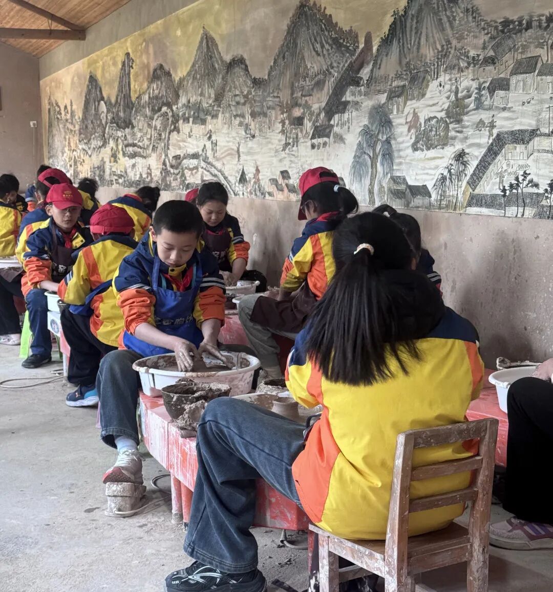 在陶窑工坊,学生们化身“小小陶艺家”,跟着师傅学习揉泥、拉坯、塑形。面对时而听话、时而“调皮”的泥土,大家耐心调整、专注创作,看着亲手制作的陶罐、杯子逐渐成型,既体会到传统制陶工艺的神奇,更懂得“耐心、专注、坚持”的匠心本质。