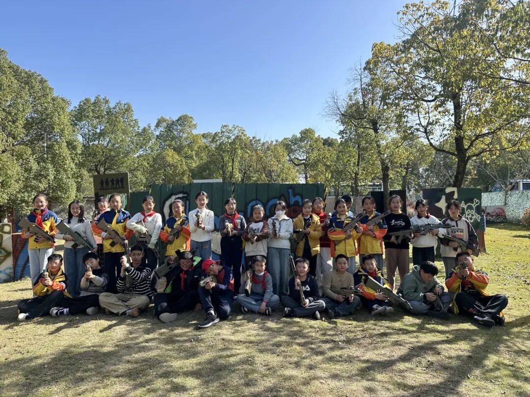 首站敬亭山,学生们在真人CS拓展中冲锋协作,锻炼反应能力与团队精神,明白“责任与协作是成功的关键”;在创意书签制作环节,大家用画笔描绘秋景、书写励志名言,将“努力向上、不负韶华”的信念定格在方寸之间。
