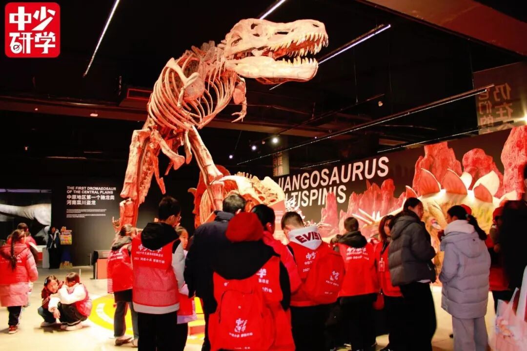 在接下来的体验中,孩子们走进 “遇见博物馆” ,“穿越”到远古时空和恐龙“面对面”。高大的恐龙骨架化石静静矗立,长形、棱柱形等各式各样的恐龙蛋化石整齐陈列,让孩子们纷纷驻足惊叹、热烈讨论。