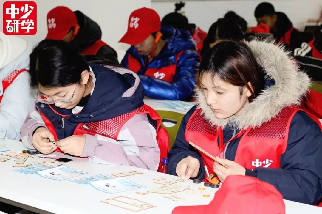 最让孩子们期待的莫过于 动手制作“太阳能小车” 。拿到零件包后,孩子们立刻投入“战斗”,对照图纸、拼接车架、连接线路、安装太阳能板,每一个步骤都充满挑战与乐趣。“太阳能板怎么固定才不会掉?”“线路接反了小车会不会不跑?” 面对组装过程中遇到的问题,孩子们有的互相讨论,有的向老师请教,现场氛围热烈而有序 。